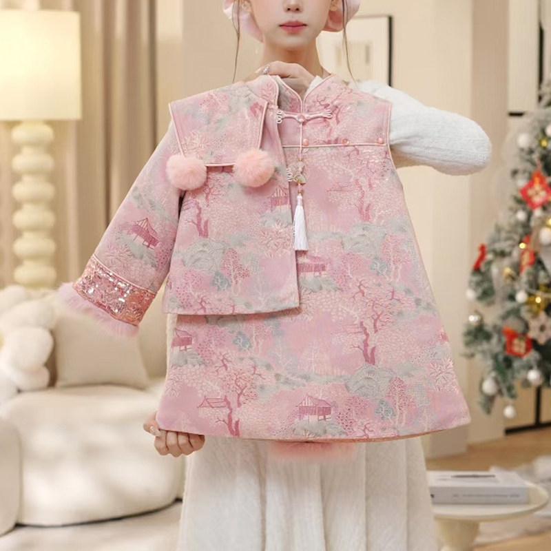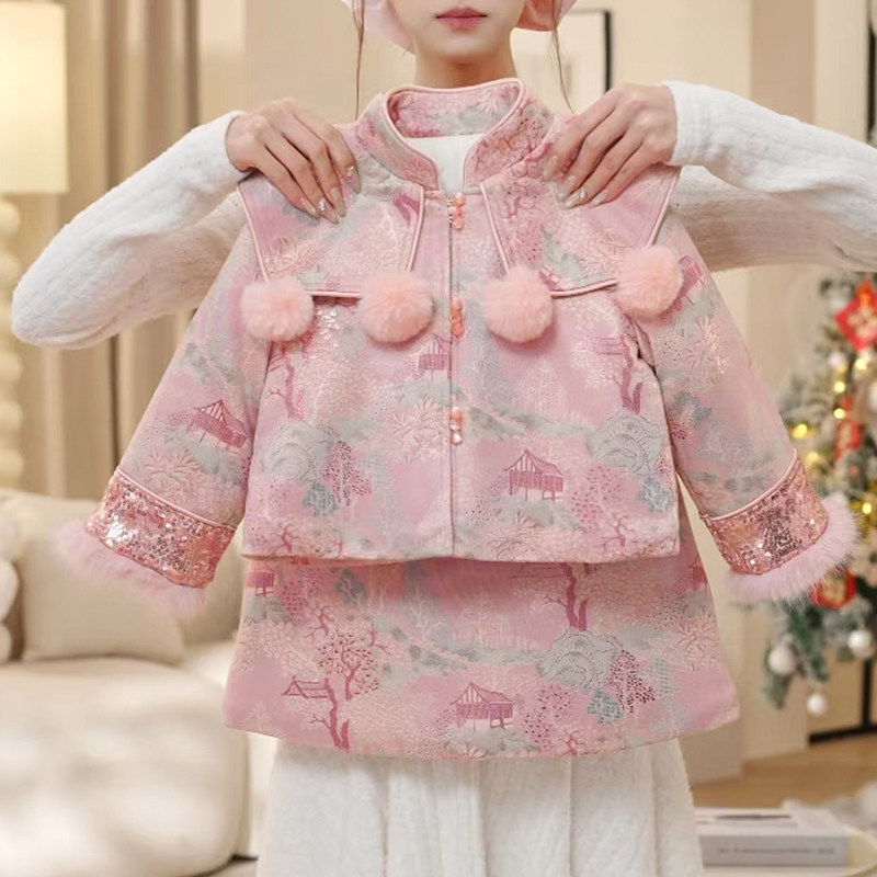 女童冬装套装2026新款洋气儿童时髦国风中式加厚两件套冬季衣服潮