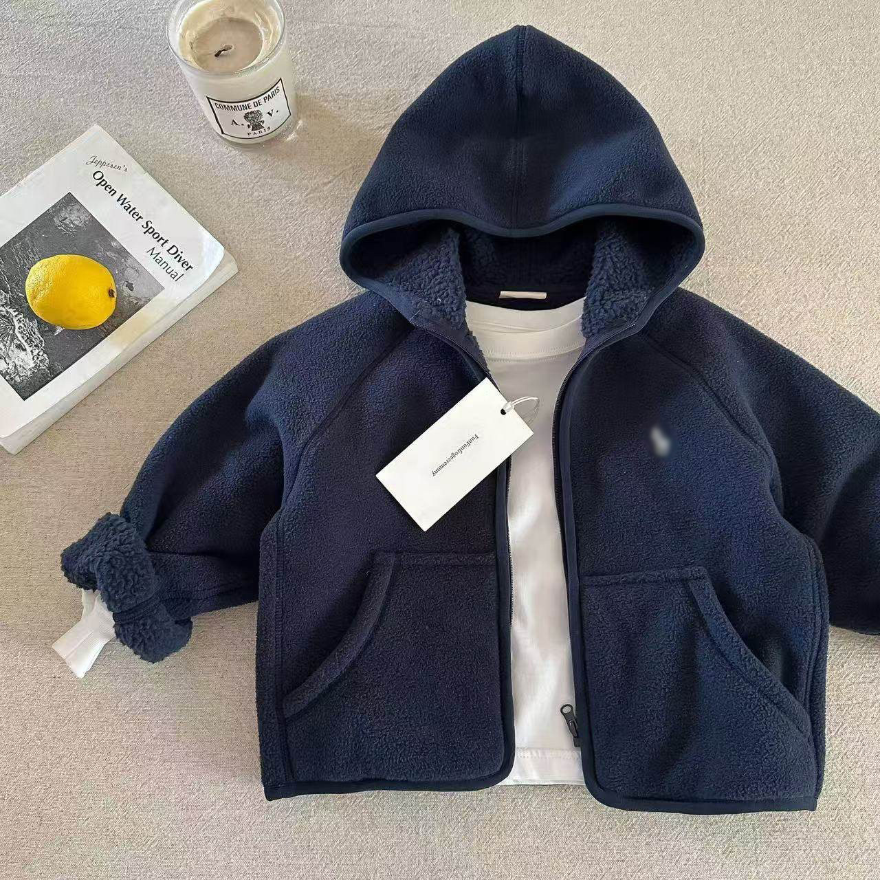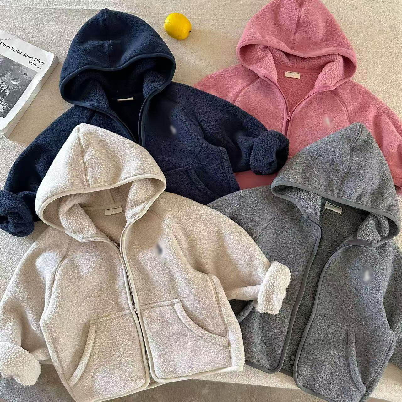 儿童连帽外套毛毛衣男2025秋冬新款小童小熊棉袄潮宝宝女加绒