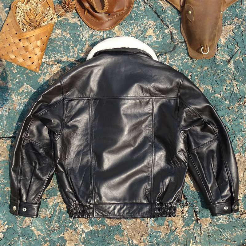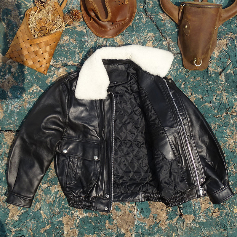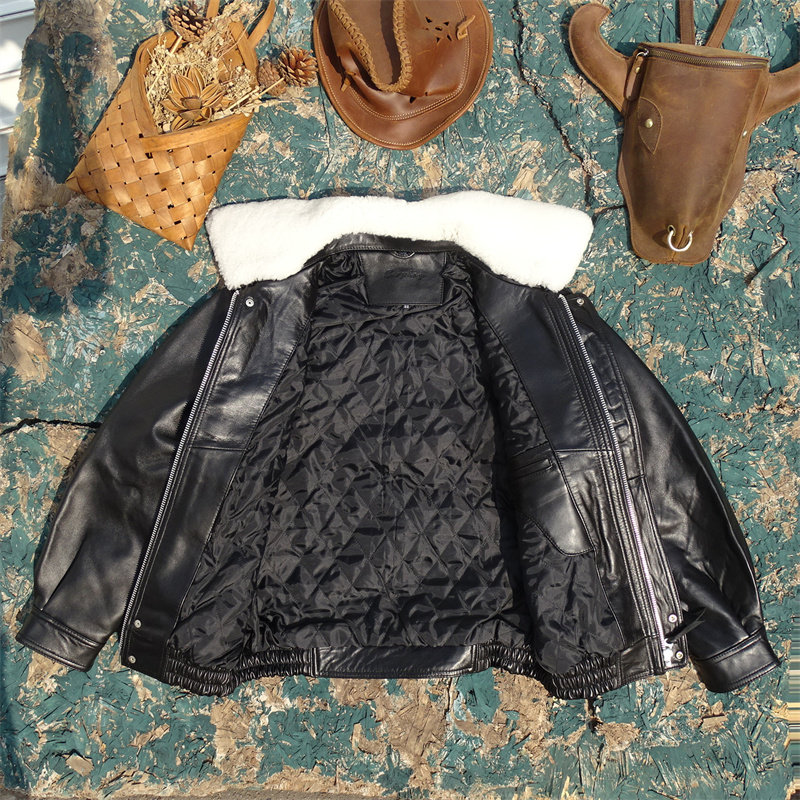 男女同款!可拆卸羊毛领头层绵羊皮真皮皮衣加棉保暖扩送廓形版