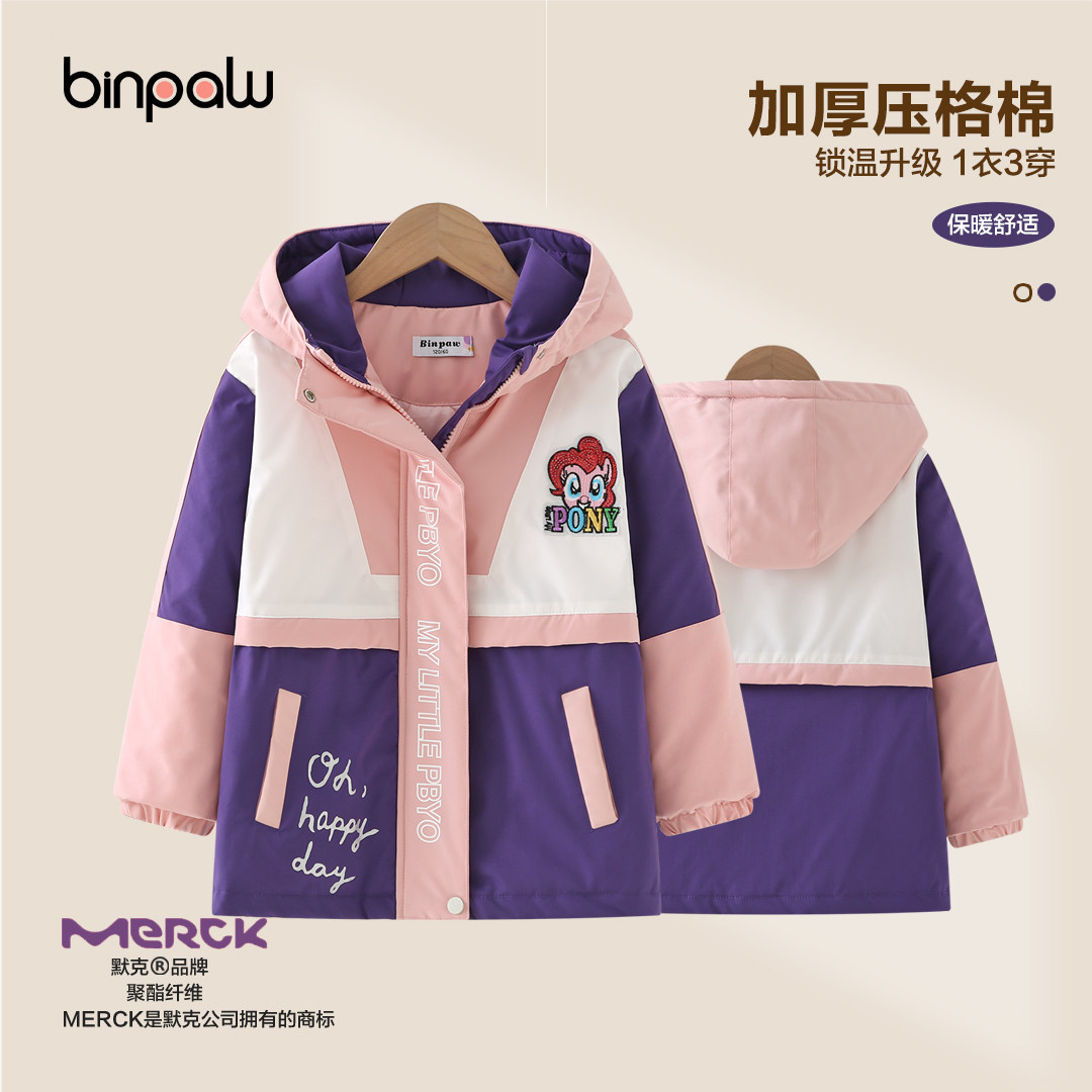 童装女童秋装冲锋衣棉衣洋气时髦中大童潮流摇粒绒三合一厚外套
