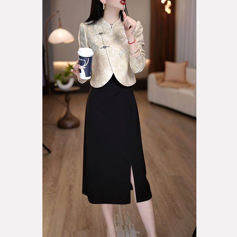 国风长袖高档两件套连衣裙女2025年春秋新款妈妈轻奢高级感套装裙