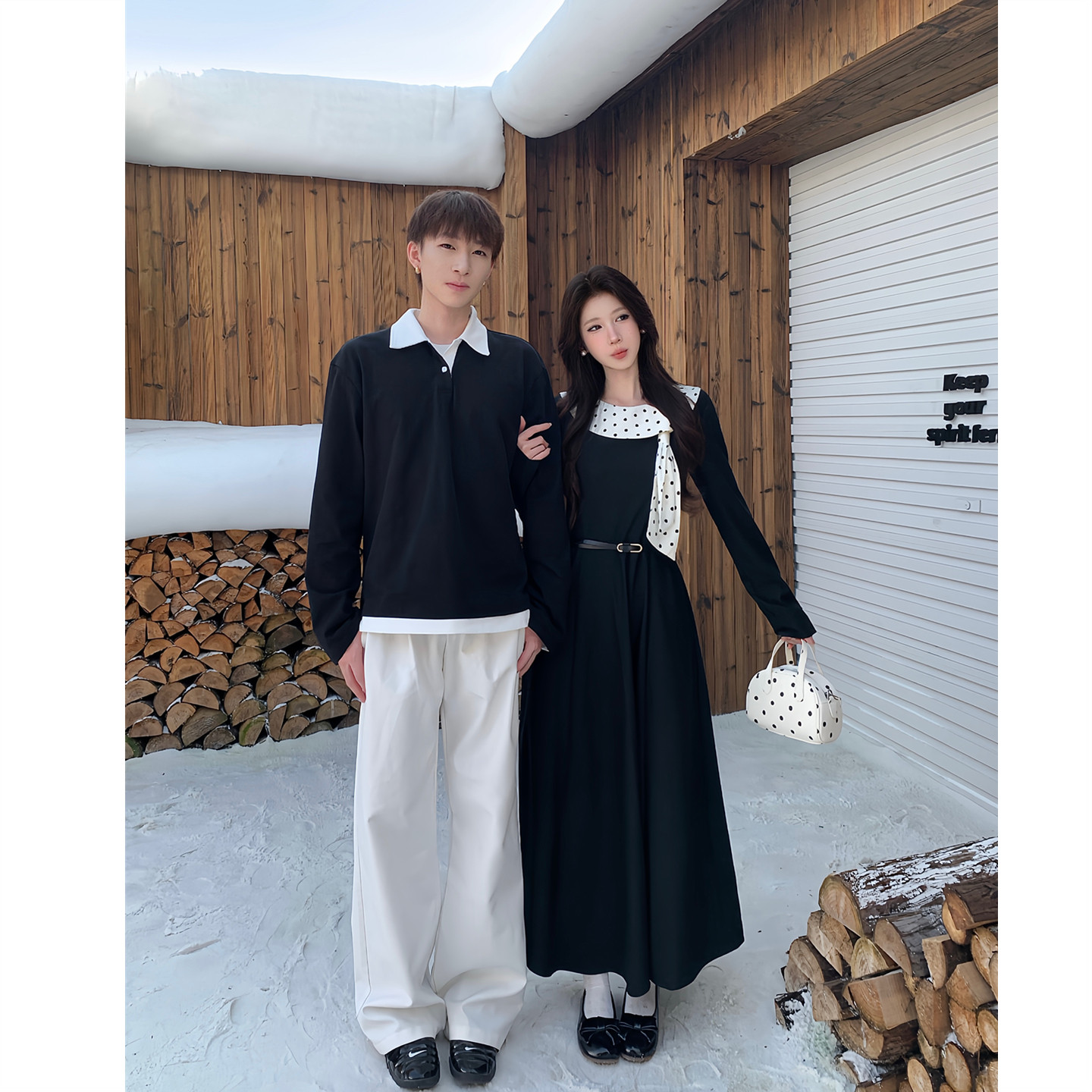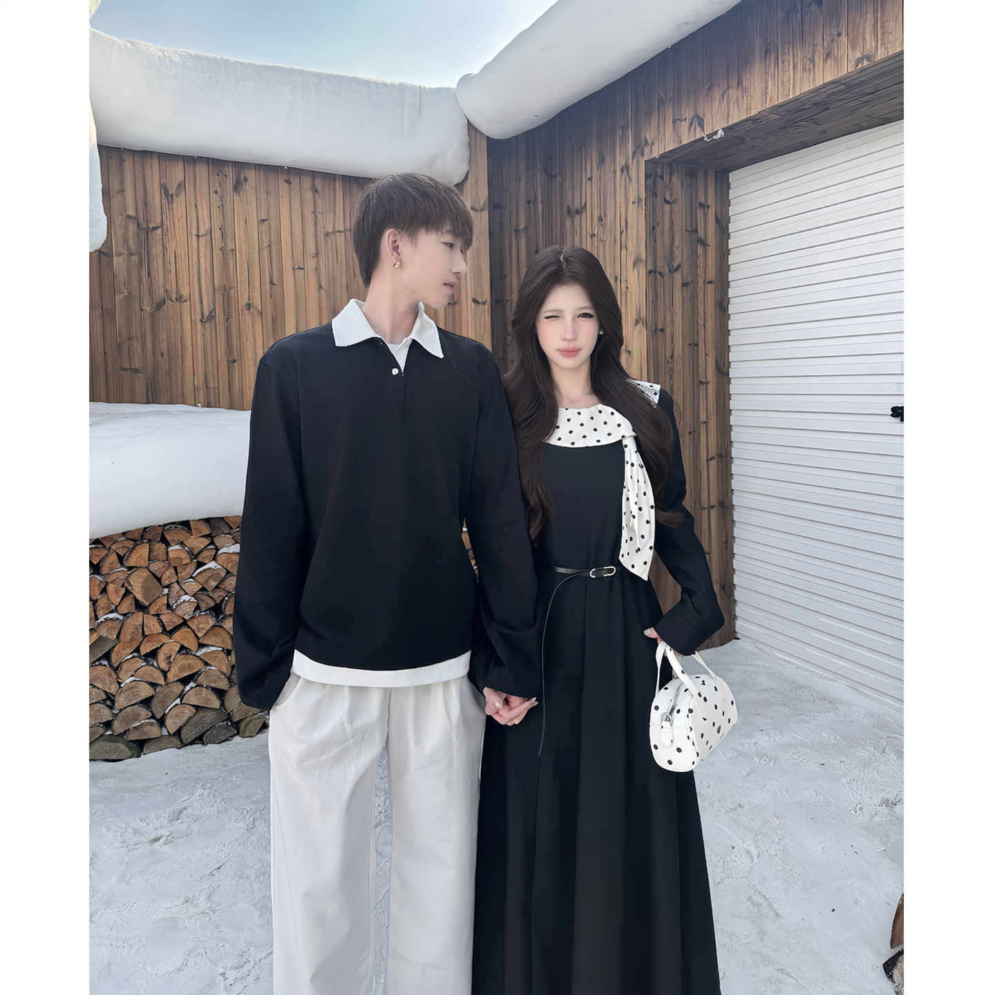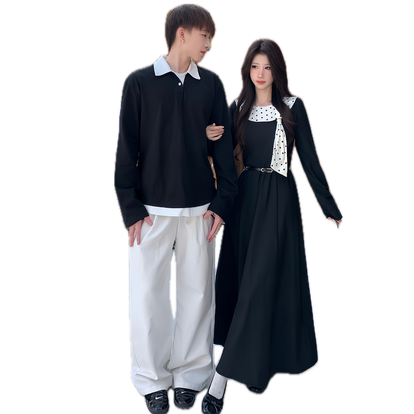 小众设计感情侣装春秋2025新款韩版长袖男女连衣裙法式一裙一衣潮