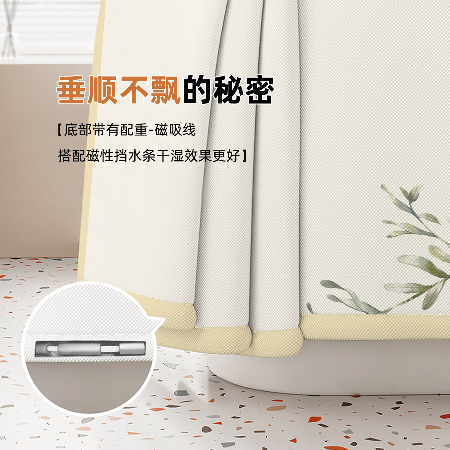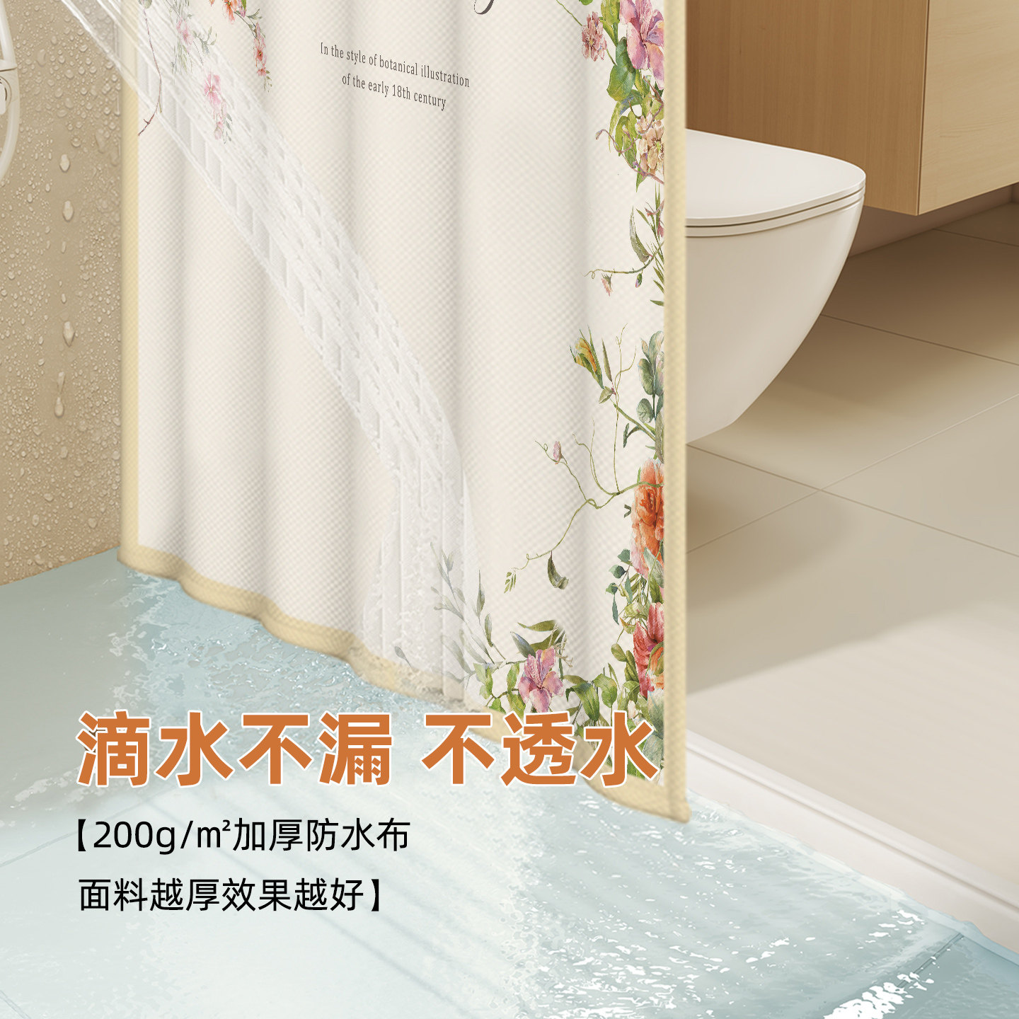 田园风卫生间浴帘防水防霉加厚速干垂坠浴室干湿分离隔断帘免打孔