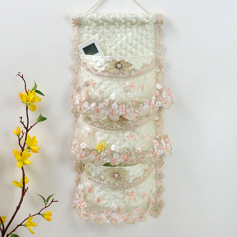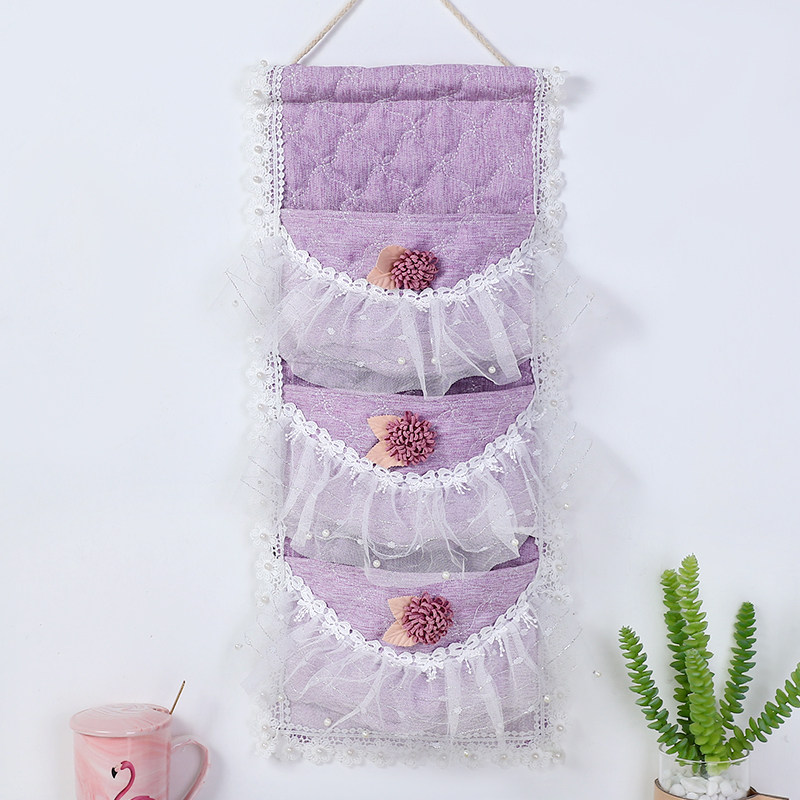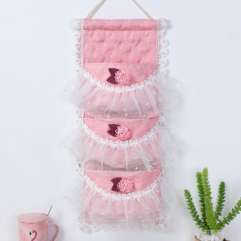 收纳袋门后卫生间挂式布艺收纳袋鞋柜墙面蕾丝收纳挂袋