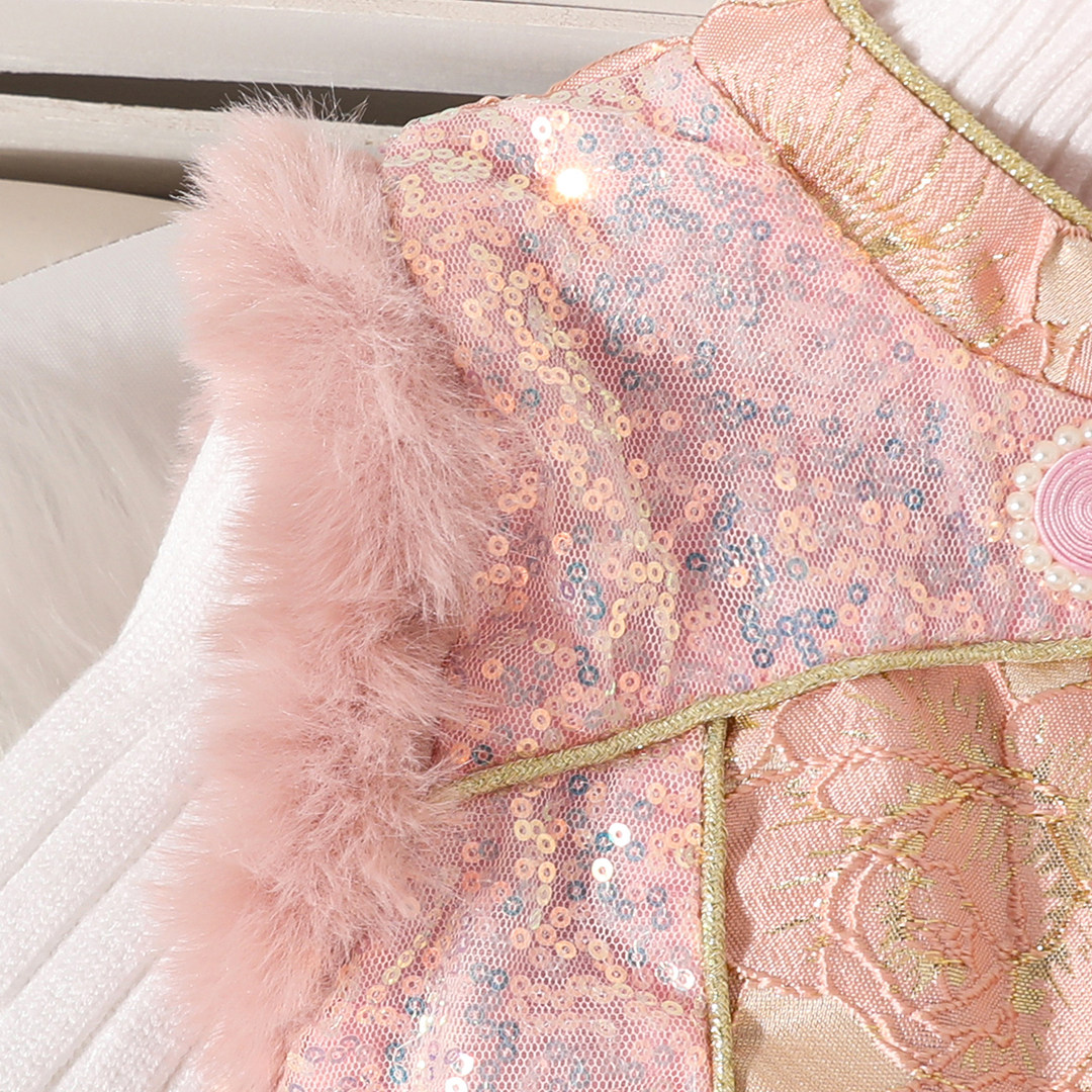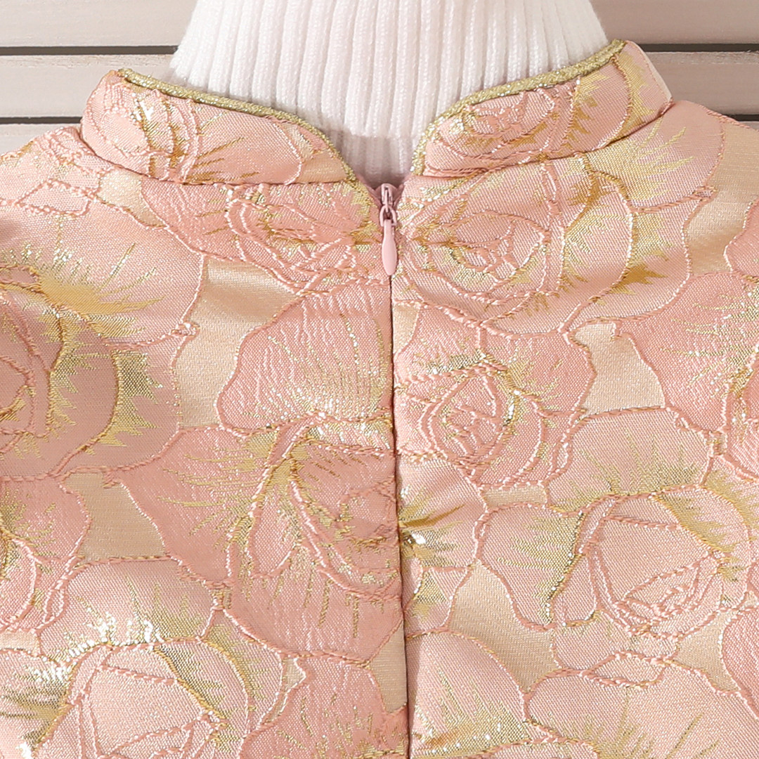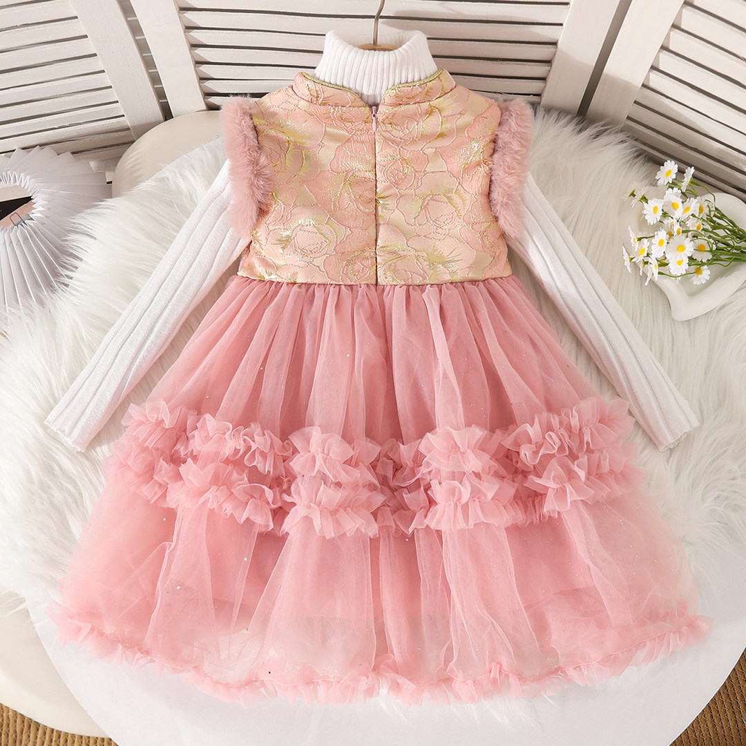 女童加绒国风连衣裙2025新款儿童公主裙女孩粉色背心裙旗袍礼服裙