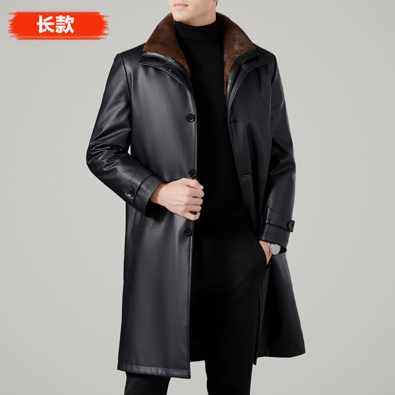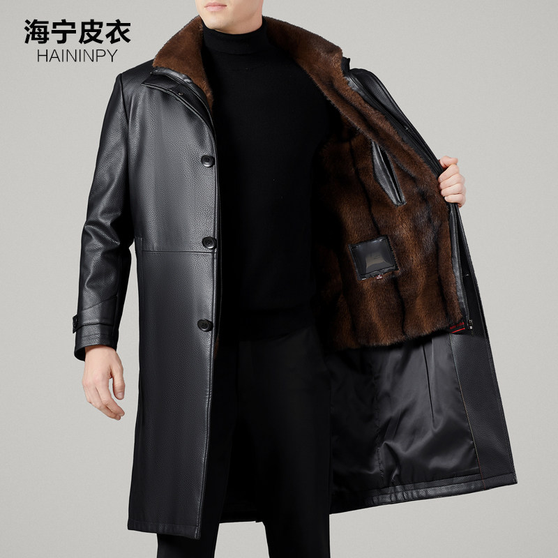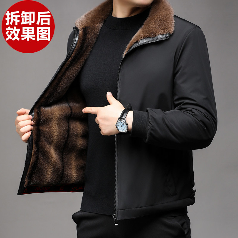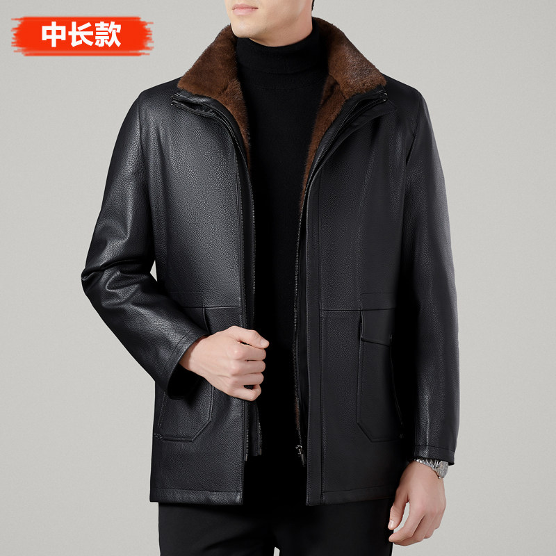 海宁中老年皮毛一体真皮皮衣男加绒加厚爸爸装皮夹克冬季皮草外套