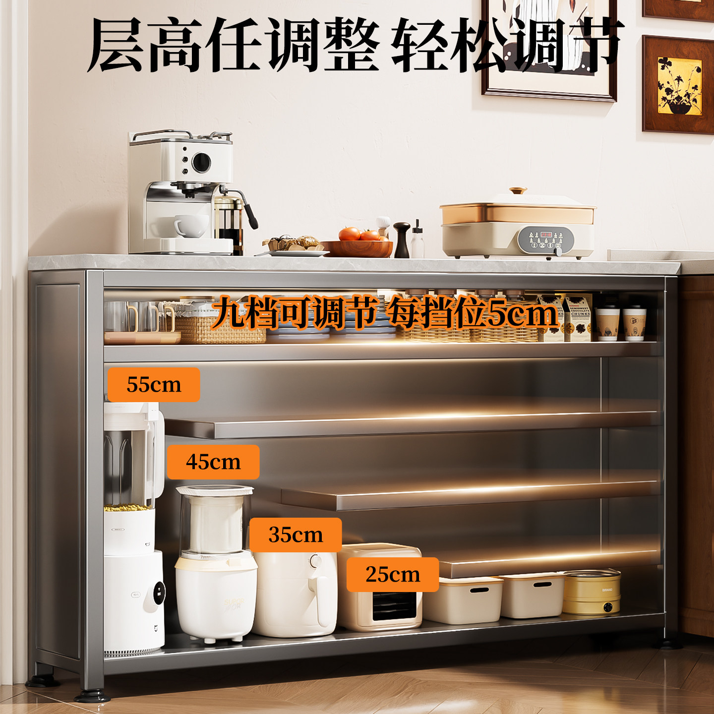 新款极窄边柜岩板厨房置物架子落地多层多功能操作台锅碗收纳储物