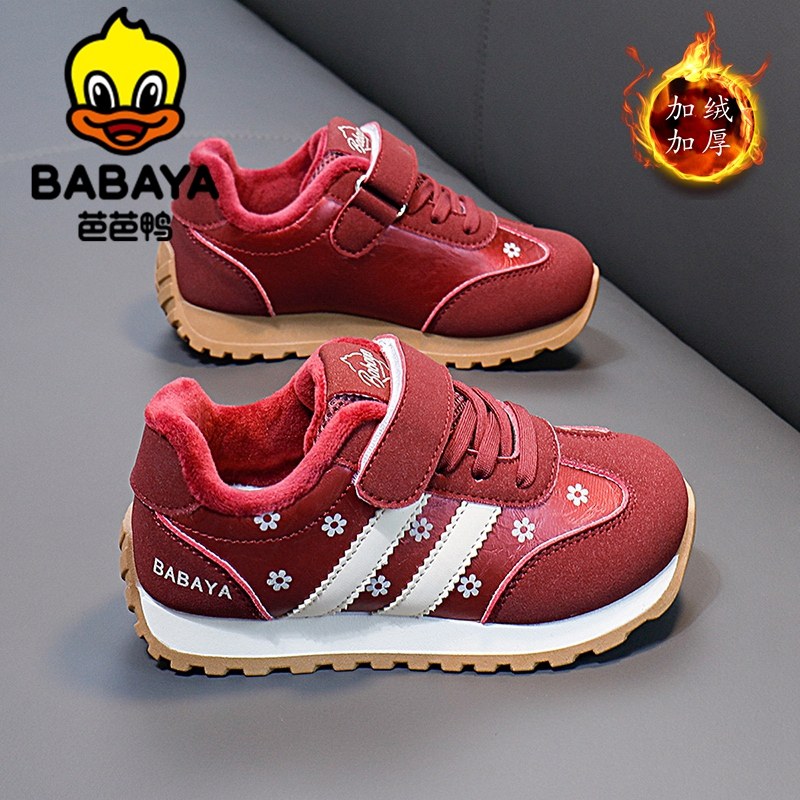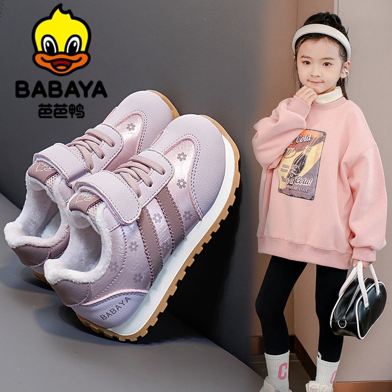 芭芭鸭二棉鞋女童鞋子2025新款冬季加绒儿童冬天鞋加厚保暖运动鞋