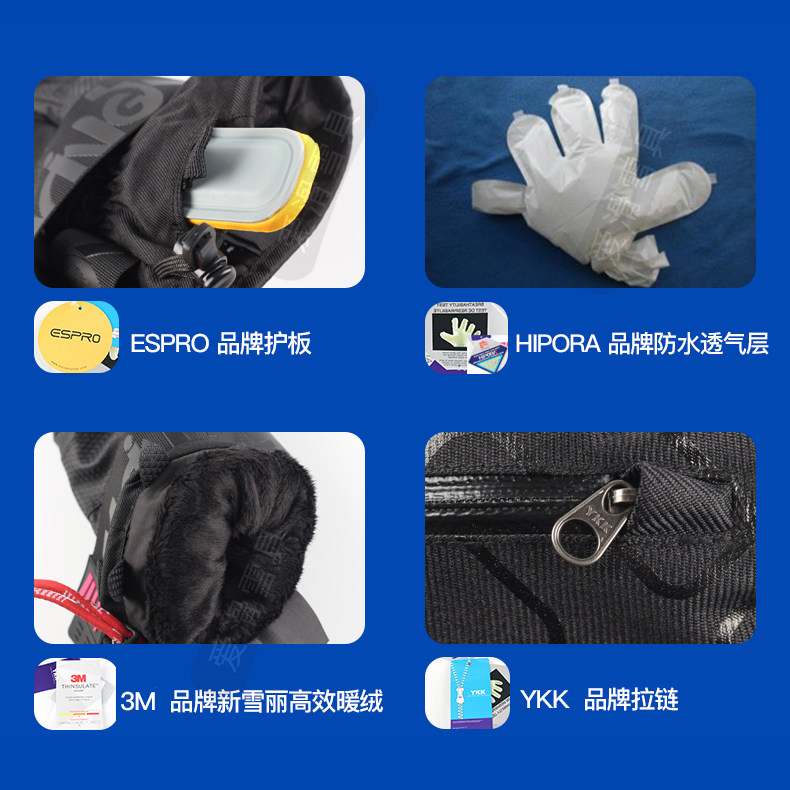 jr滑雪手套 带护腕 男 单板手套女 内置护手 闷子 护掌 防水透气