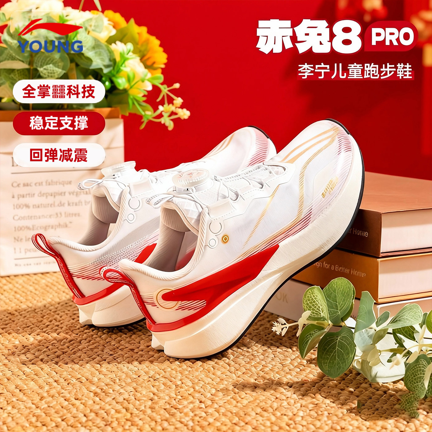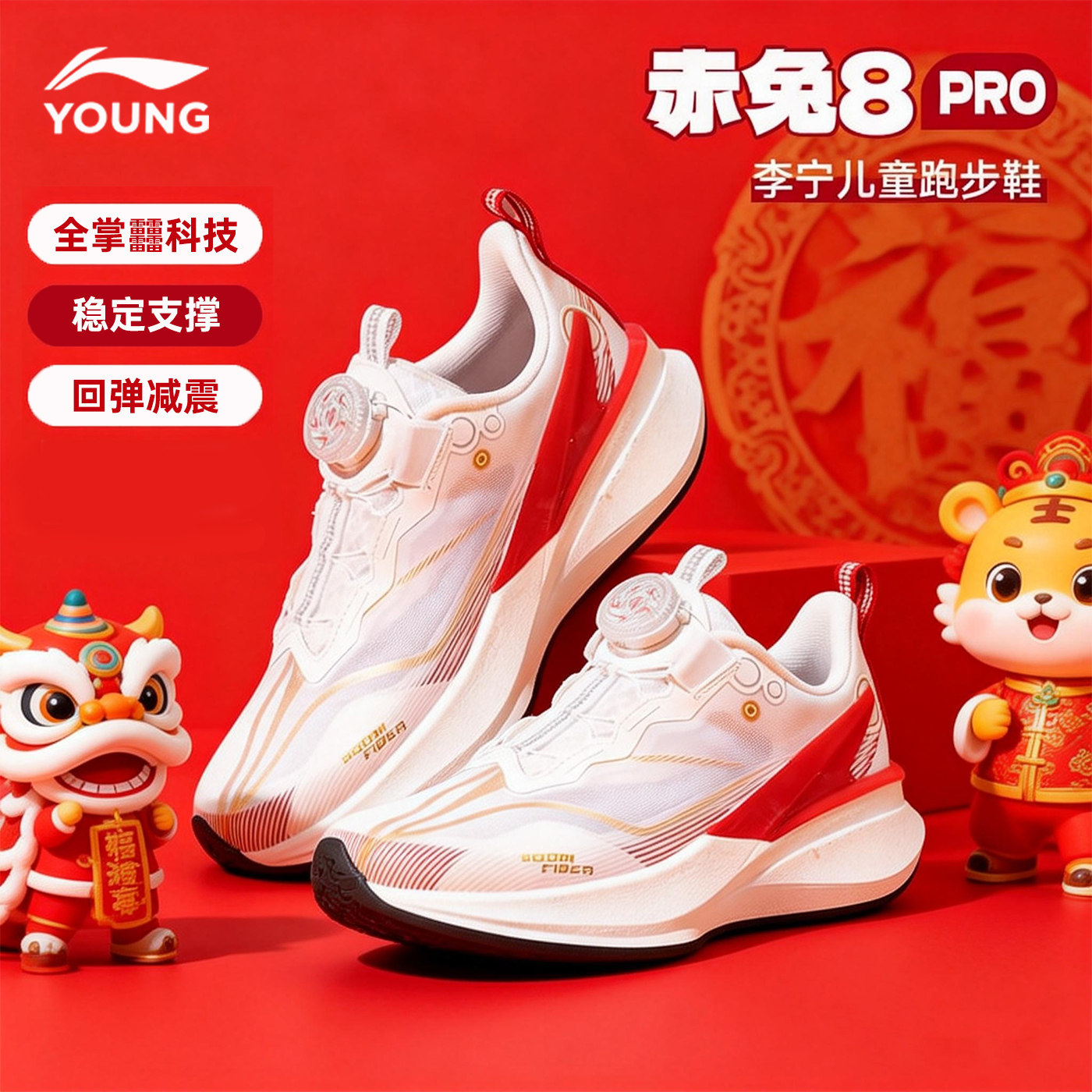 李宁赤兔8PRO儿童跑步鞋男童新年限定大童青少年红色童鞋运动鞋子
