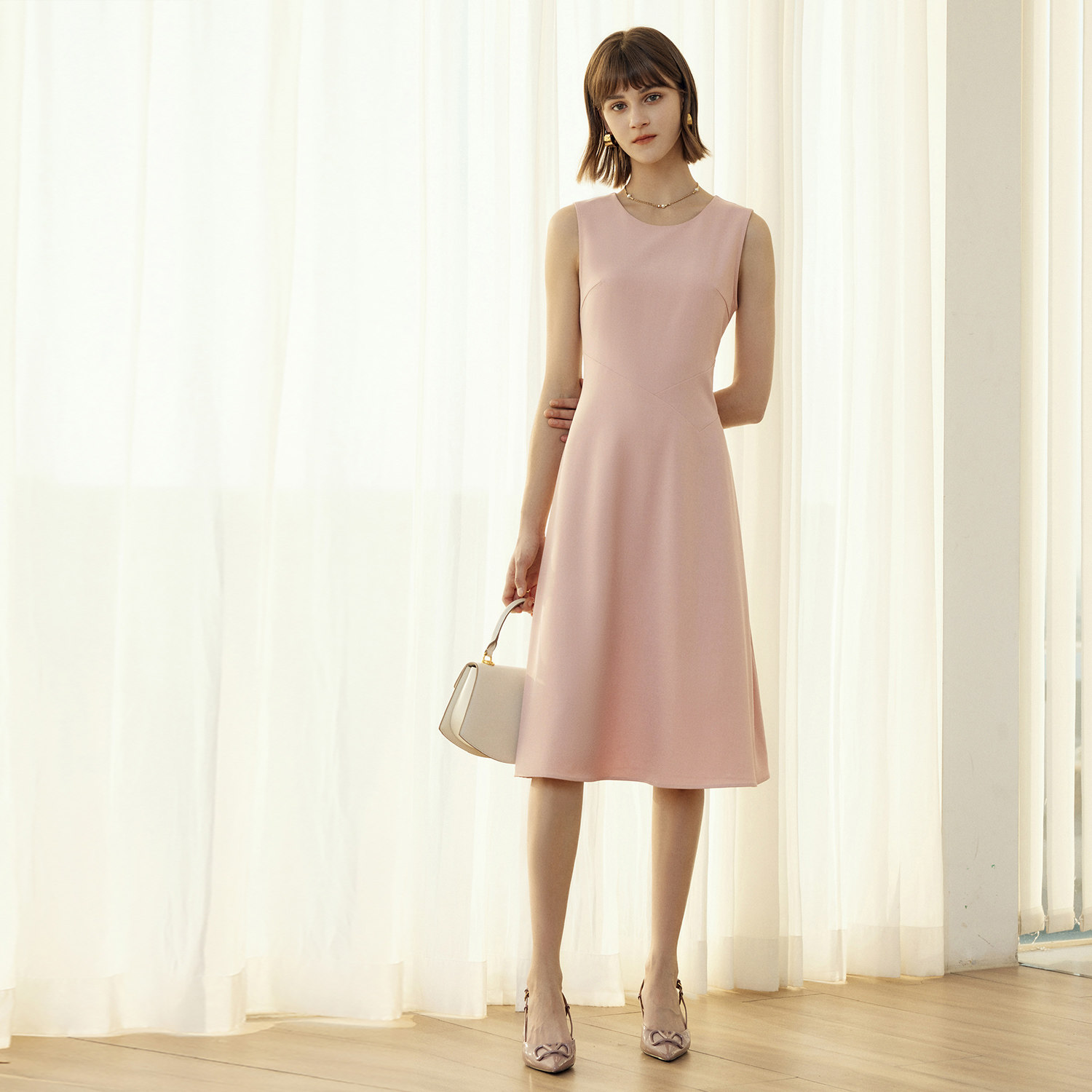颜域气质黑色连衣裙女装2026新款早春收腰显瘦简约背心裙内搭裙子