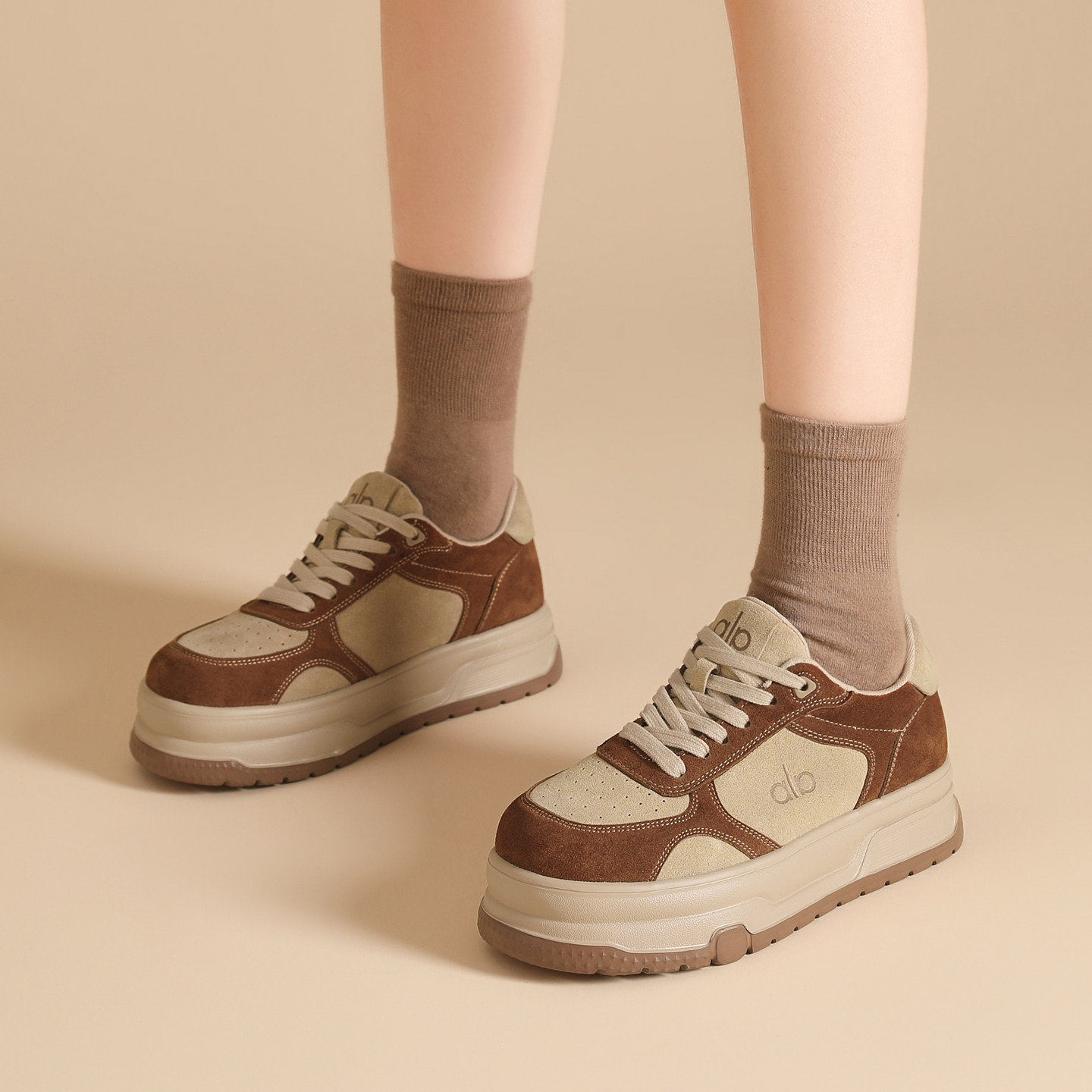 厚底增高休闲鞋女2025秋冬新款真皮软底不闷脚百搭轻便运动板鞋子