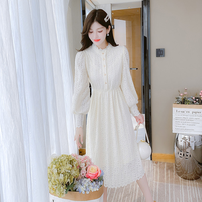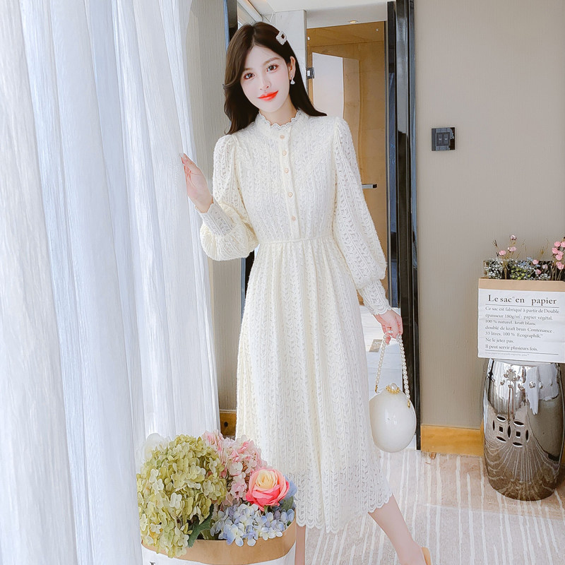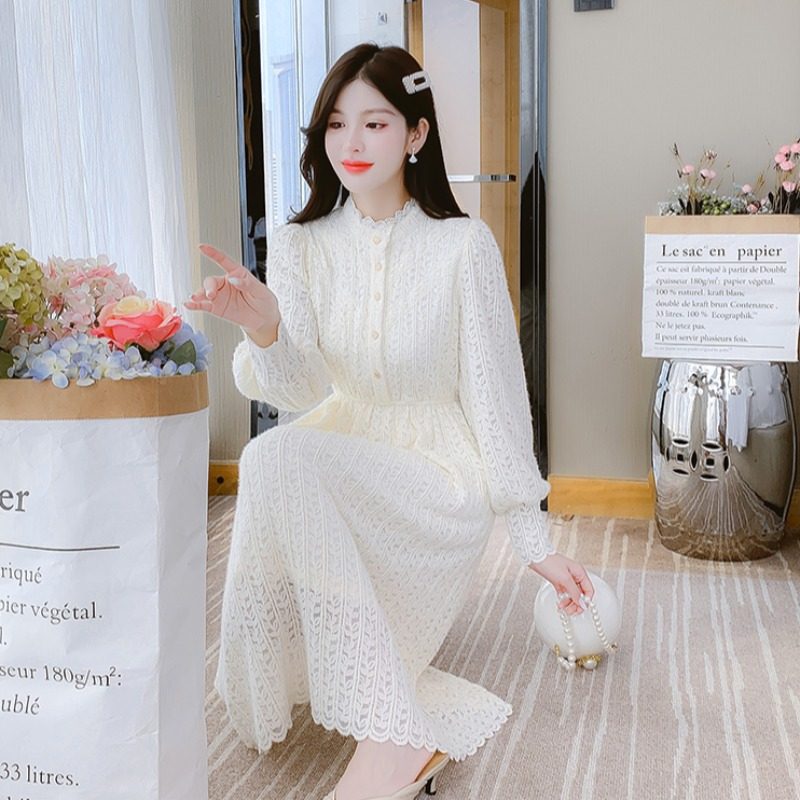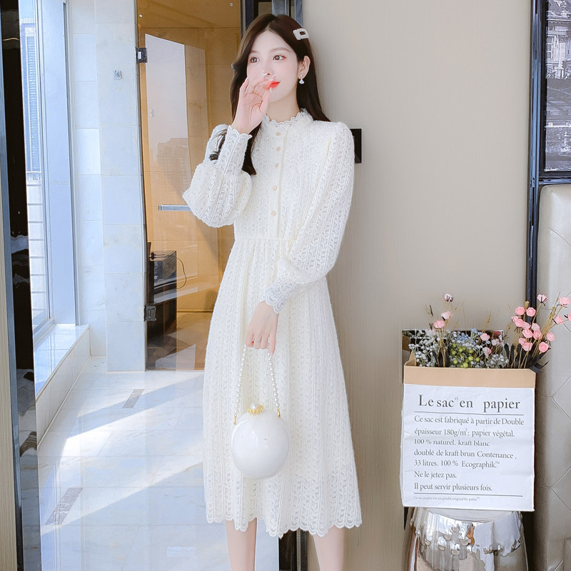 春秋冬季蕾丝长袖气质连衣裙女装2025新款小个子高级感打底配大衣