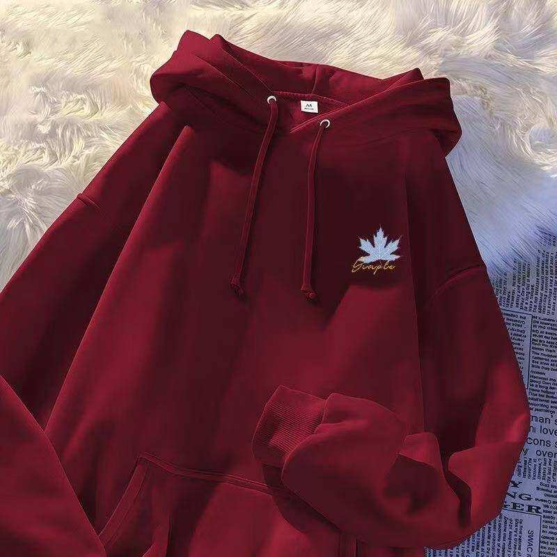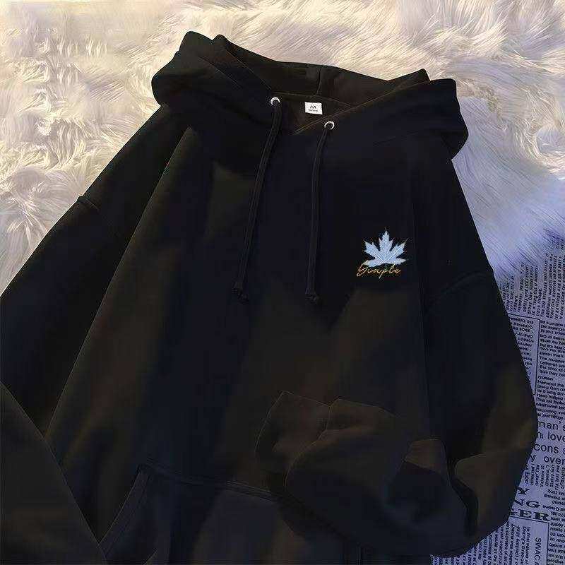 港风蓝色枫叶连帽卫衣中大童秋冬2025新款宽松潮牌男女款休闲上衣
