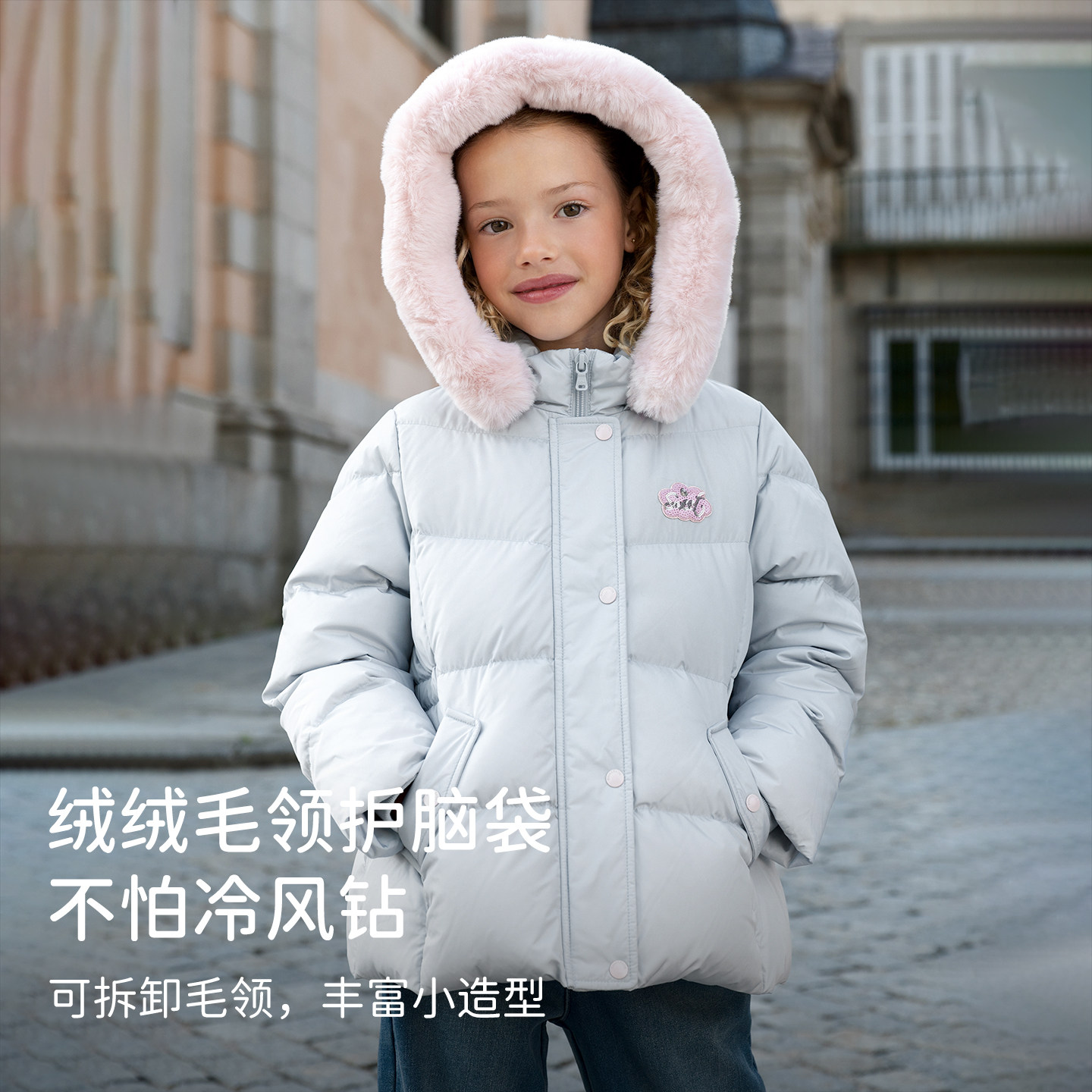 戴维贝拉女童短款羽绒服儿童三防外套2026冬装新款童装加厚衣服女