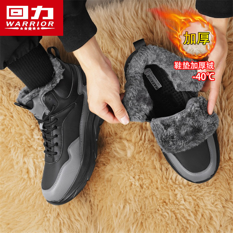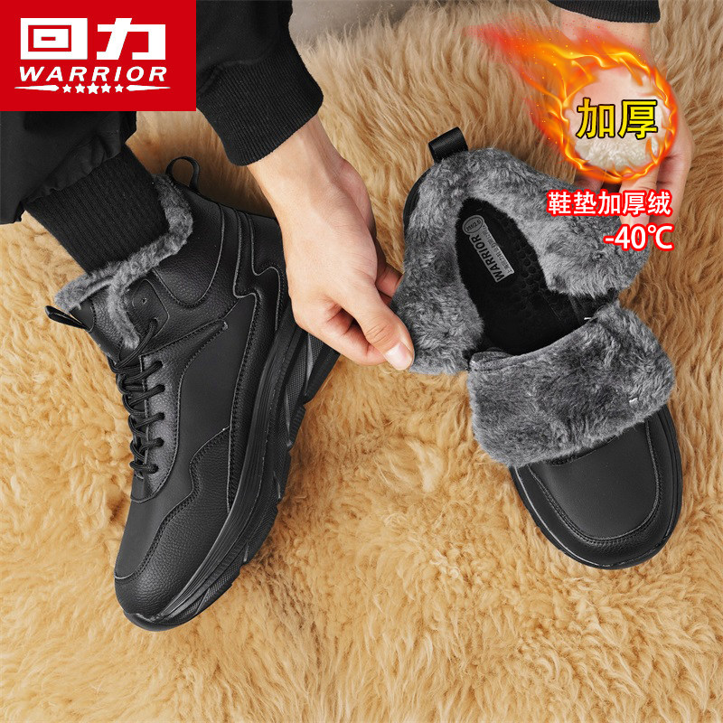 回力高帮保暖男鞋冬季加绒老人棉鞋户外防水防滑男士运动鞋雪地靴