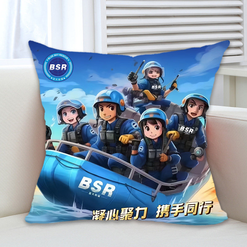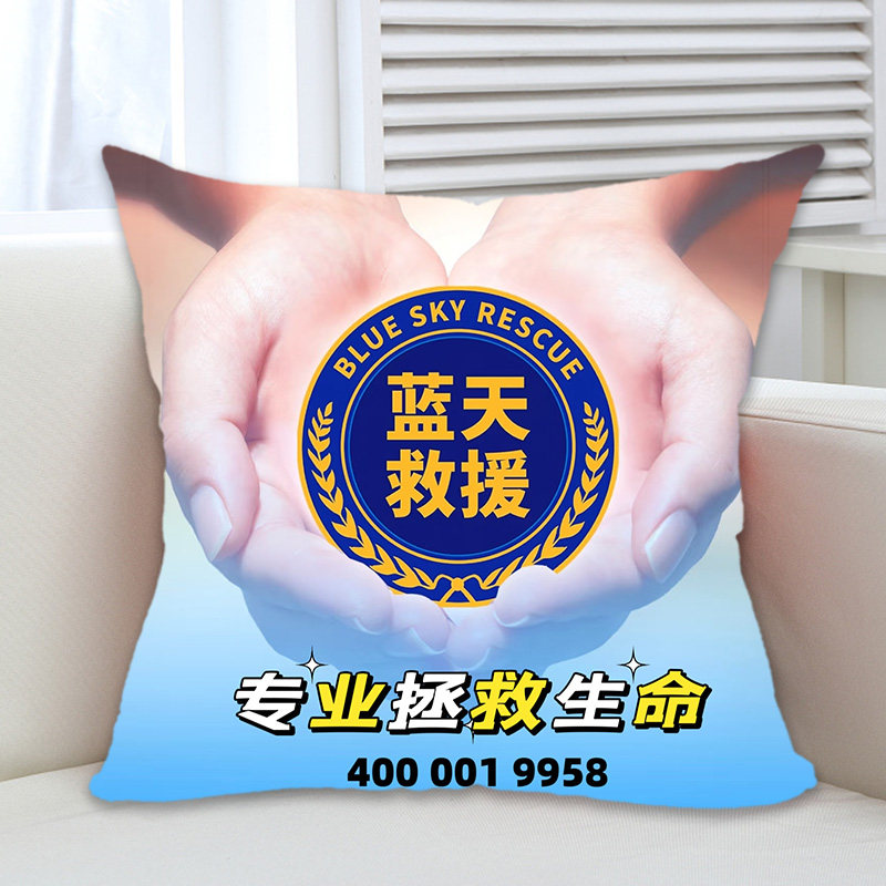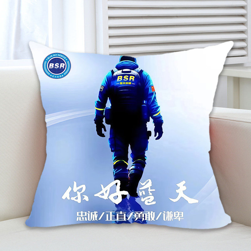 蓝天救援队周边抱枕被公仔定制应急救援标志纪念礼品办公室腰靠枕