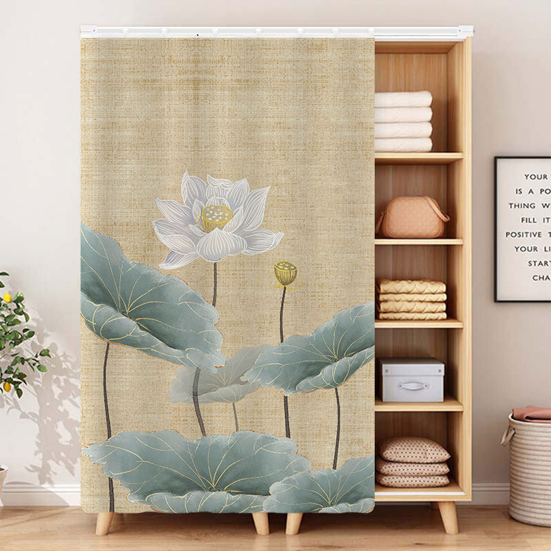 中式柜子遮挡帘衣柜门帘书柜防尘帘置物架遮丑帘免打孔轨道式拉帘