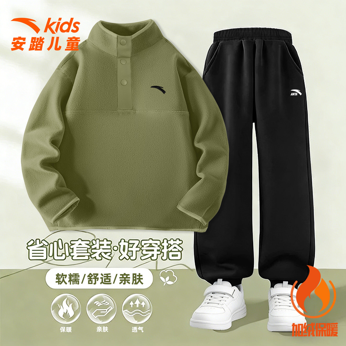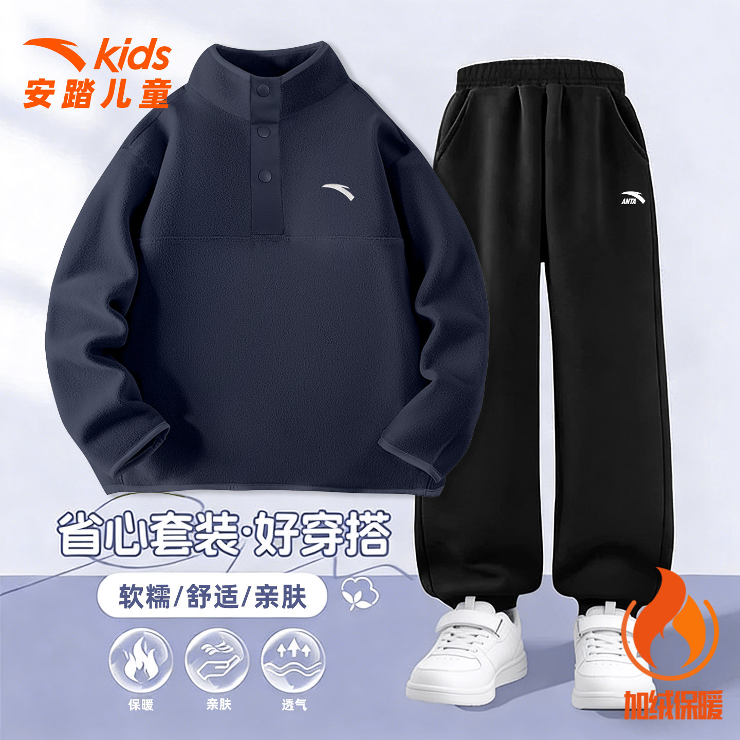 安踏儿童卫衣套装男童2026春季新款摇粒绒上衣保暖长裤运动两件套