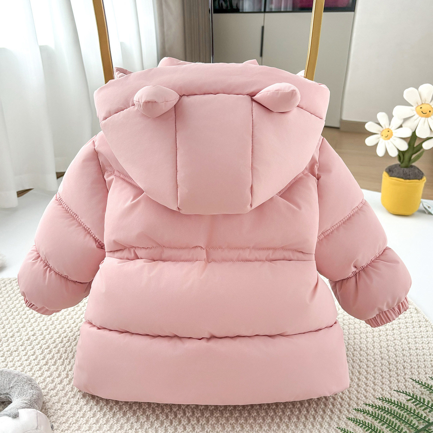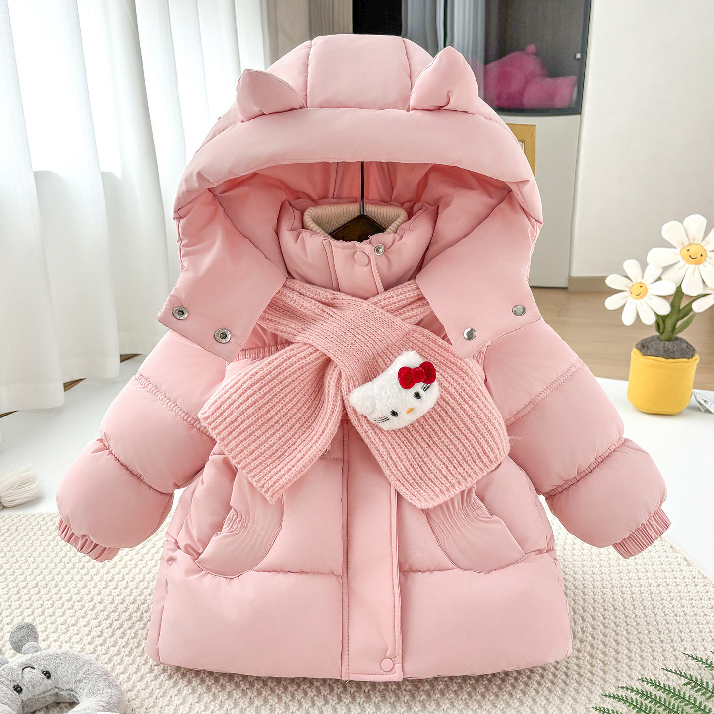 女童连帽棉服2025新款加绒加厚冬季保暖中长款洋气儿童棉袄外套衣
