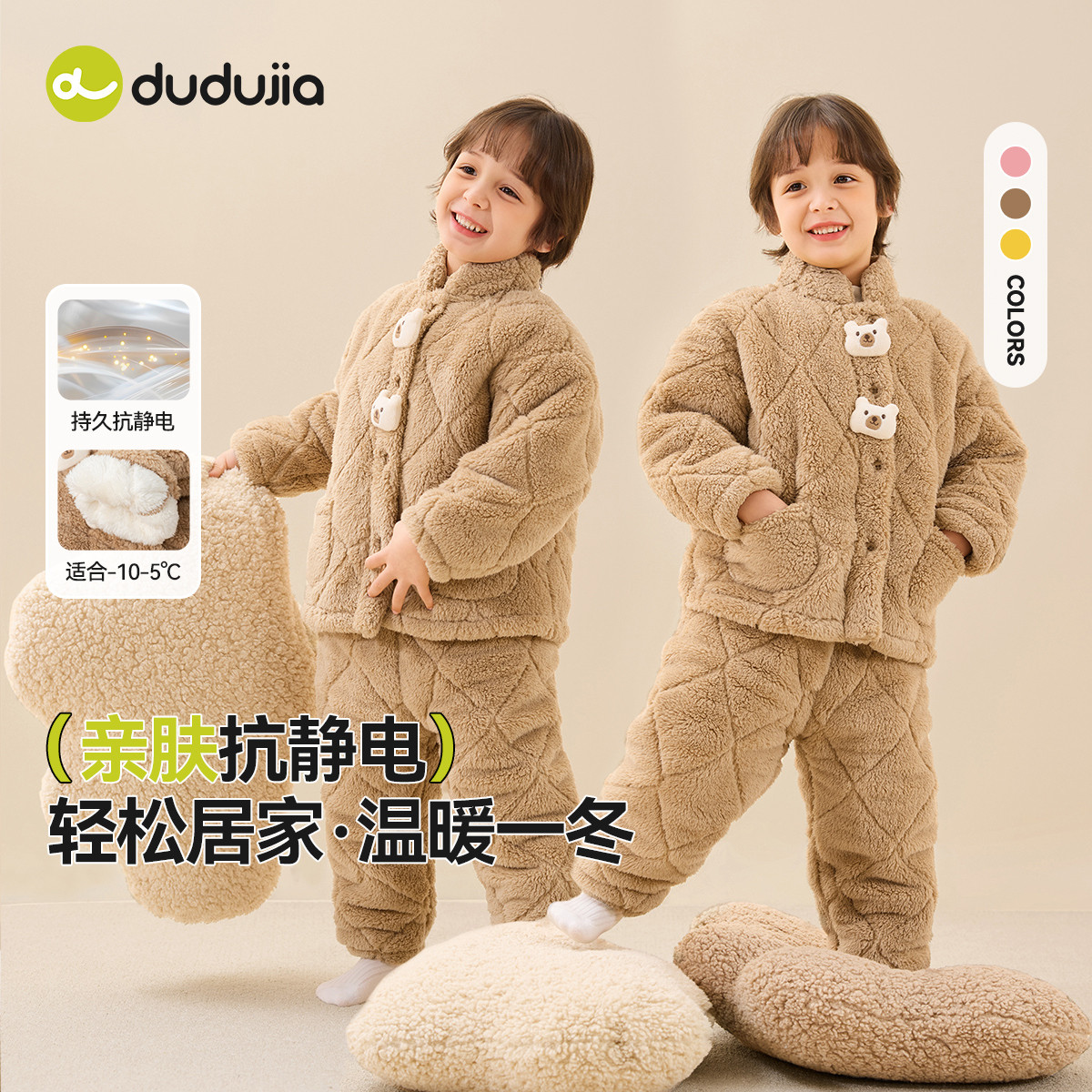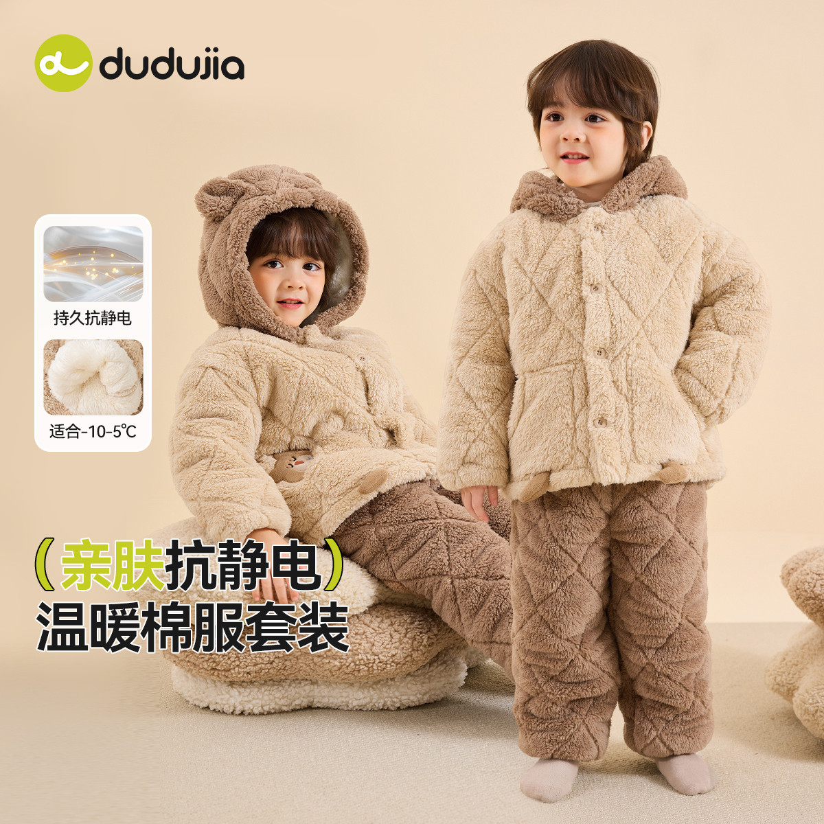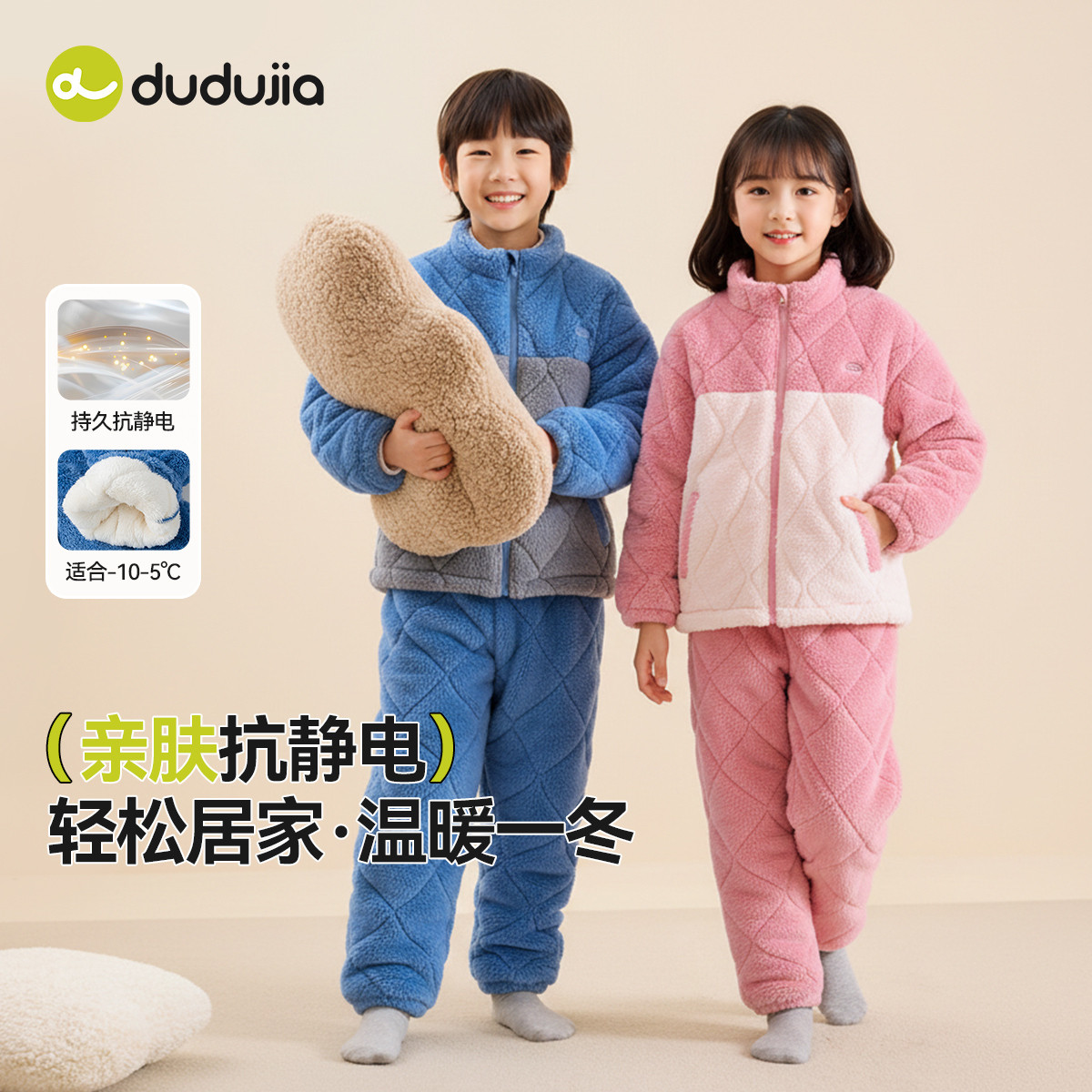 311线报网描述:嘟嘟家儿童加厚家居服冬季宝宝睡衣睡裤套装
