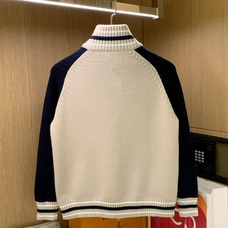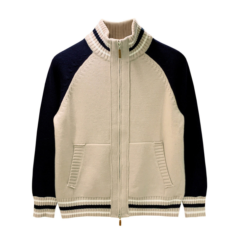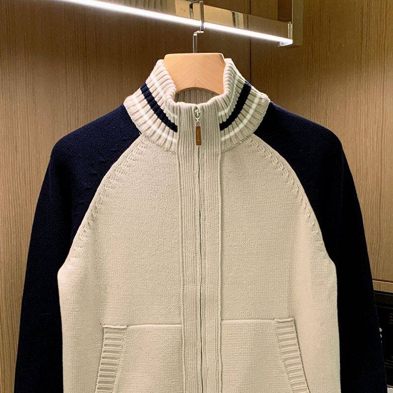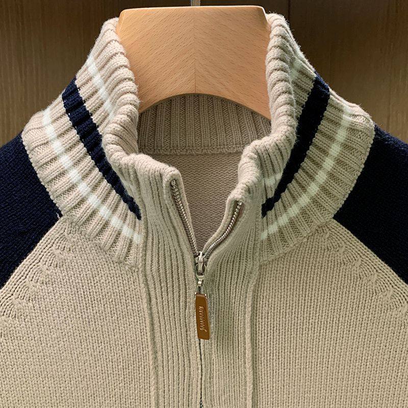 冬季加厚保暖衣服拉链开衫外套男款美式复古休闲拼色半高领毛衣男