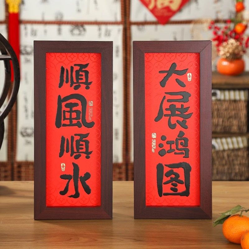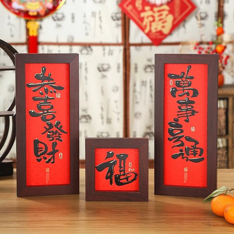 新中式实木磁吸相框创意对联家居冰箱磁吸冰箱贴摆件装饰品