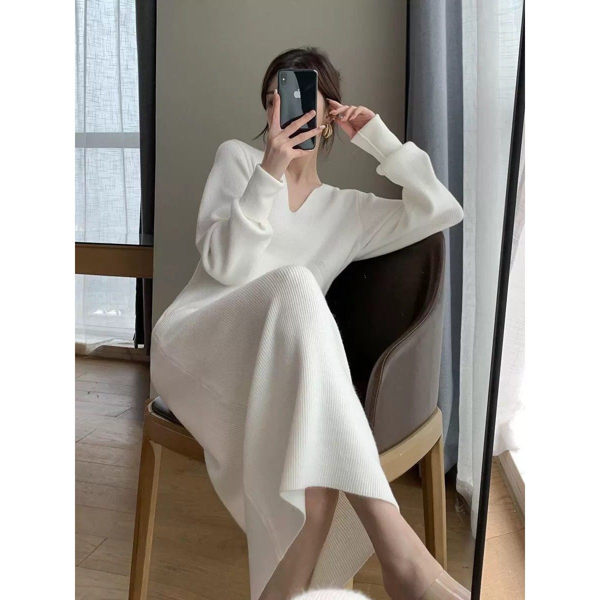 欧洲站法式高级感白色针织连衣裙女秋冬2025气质显瘦内搭毛衣裙子