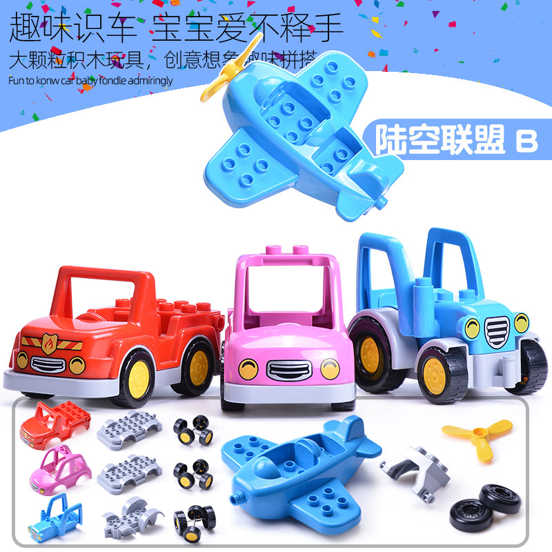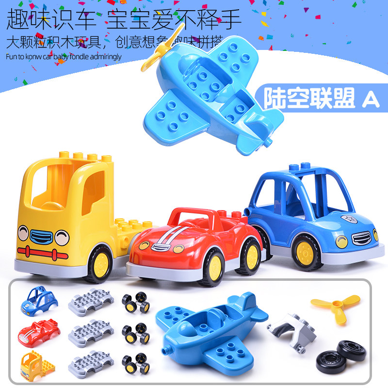 大颗粒积木配件儿童玩具小汽车火车飞机警车消防车摩托车交通工具