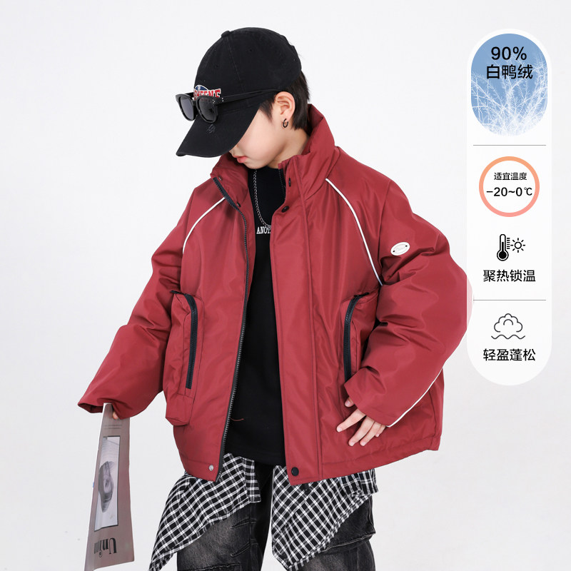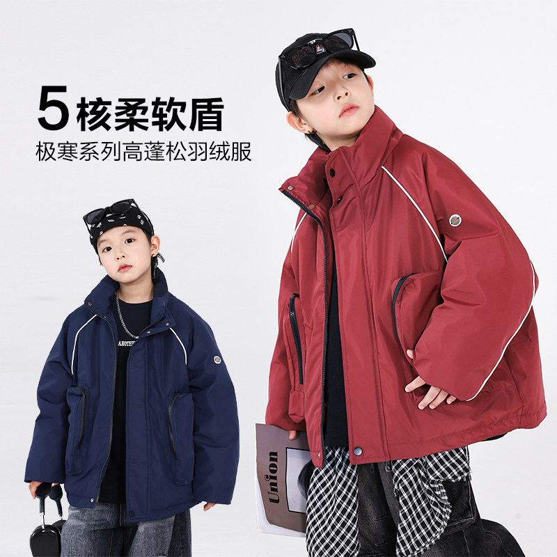 男童冬季新年红色冲锋衣工装羽绒服2026新款儿童过年加厚防寒外套