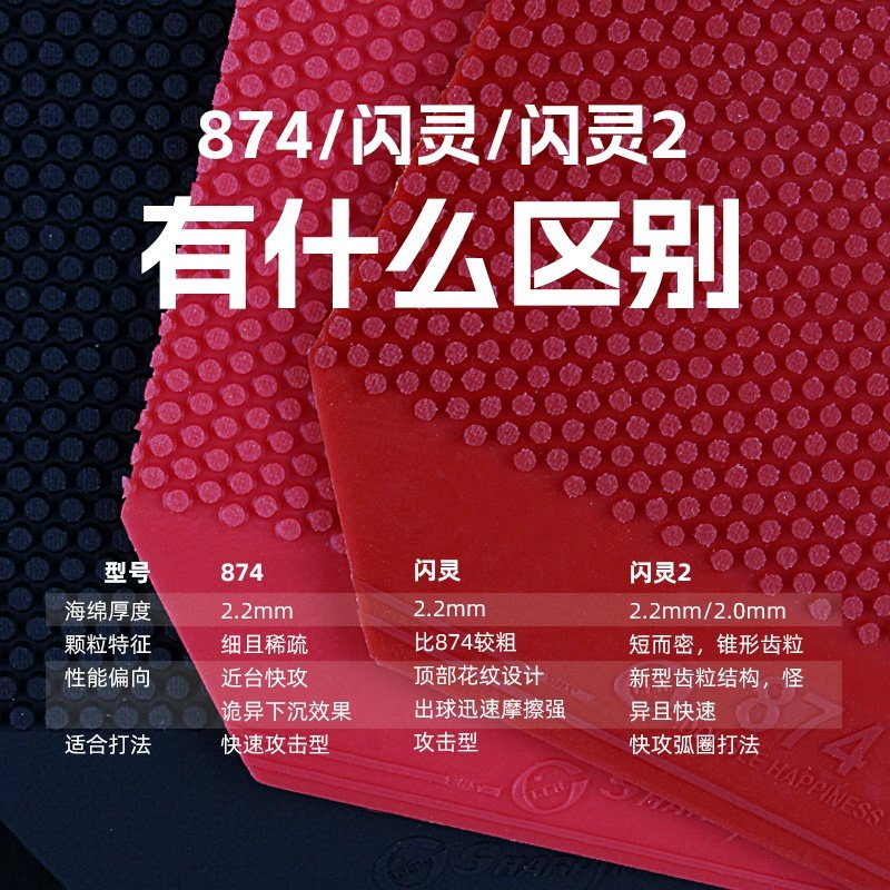 红双喜乒乓球拍胶皮874生胶颗粒快攻型闪灵怪异下沉兵乒乓球胶皮