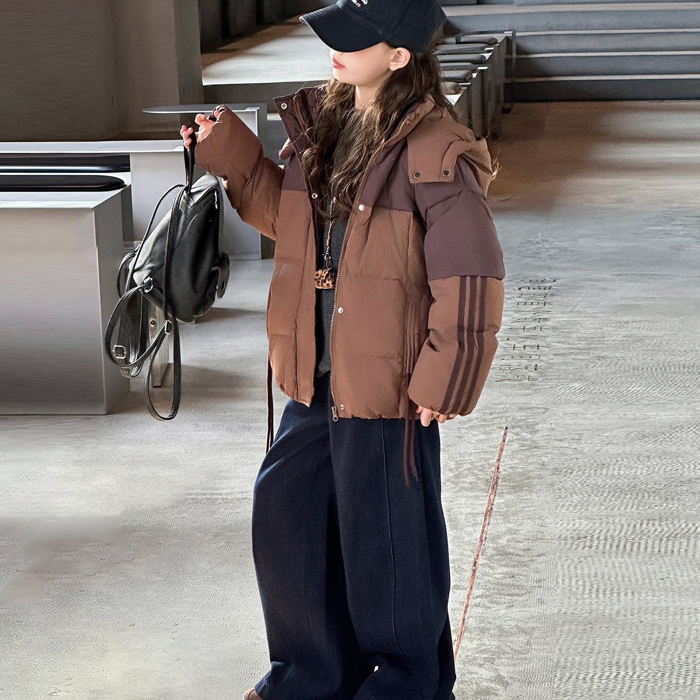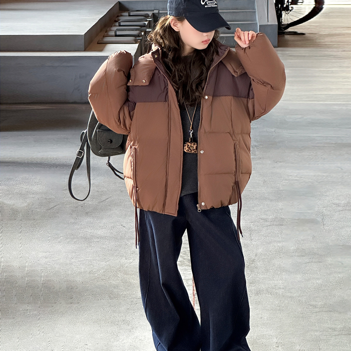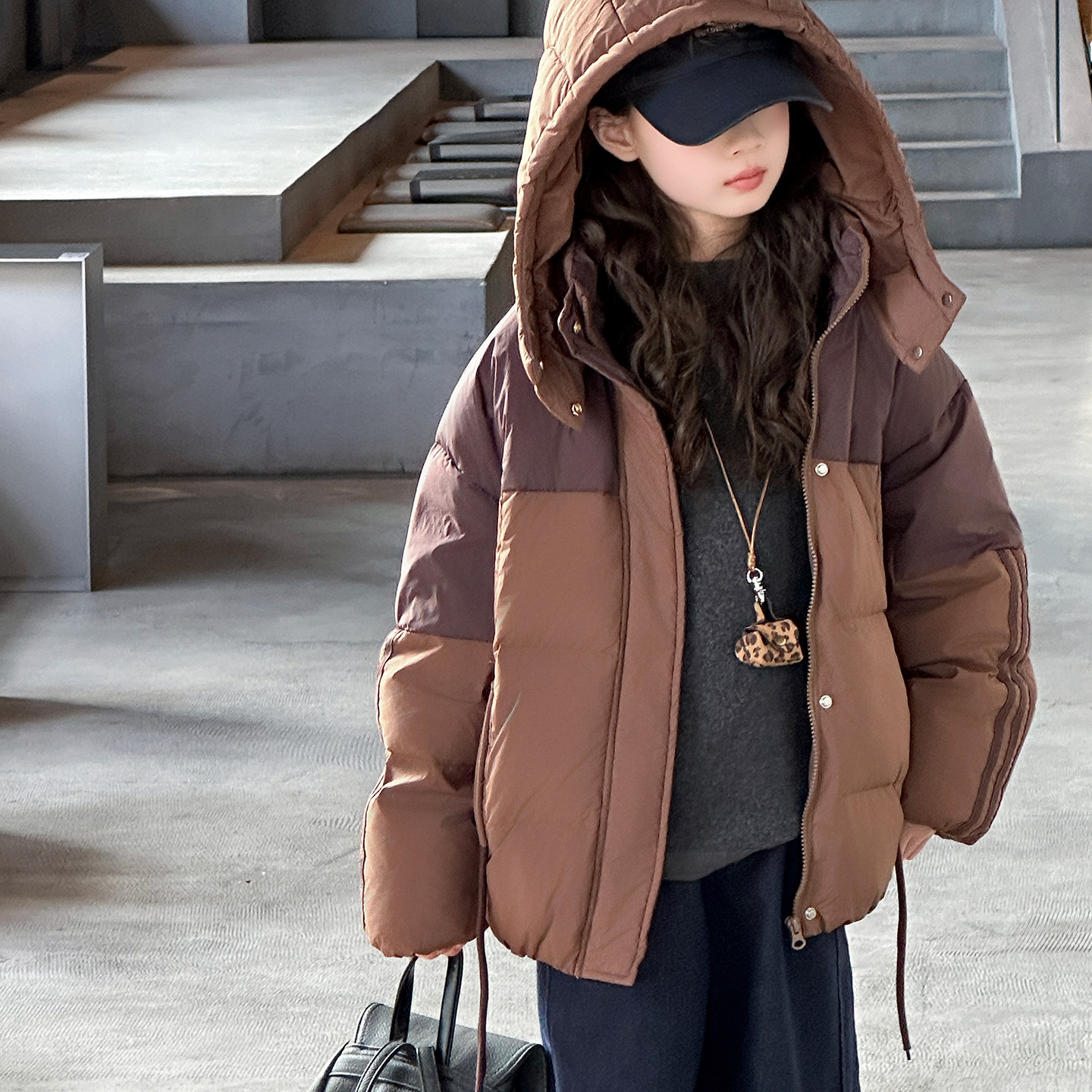 女款冬季潮牌羽绒服2025年新款中大童加绒加厚外出拼色保暖衣服潮