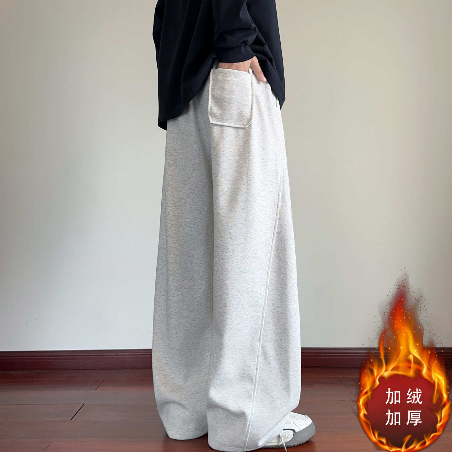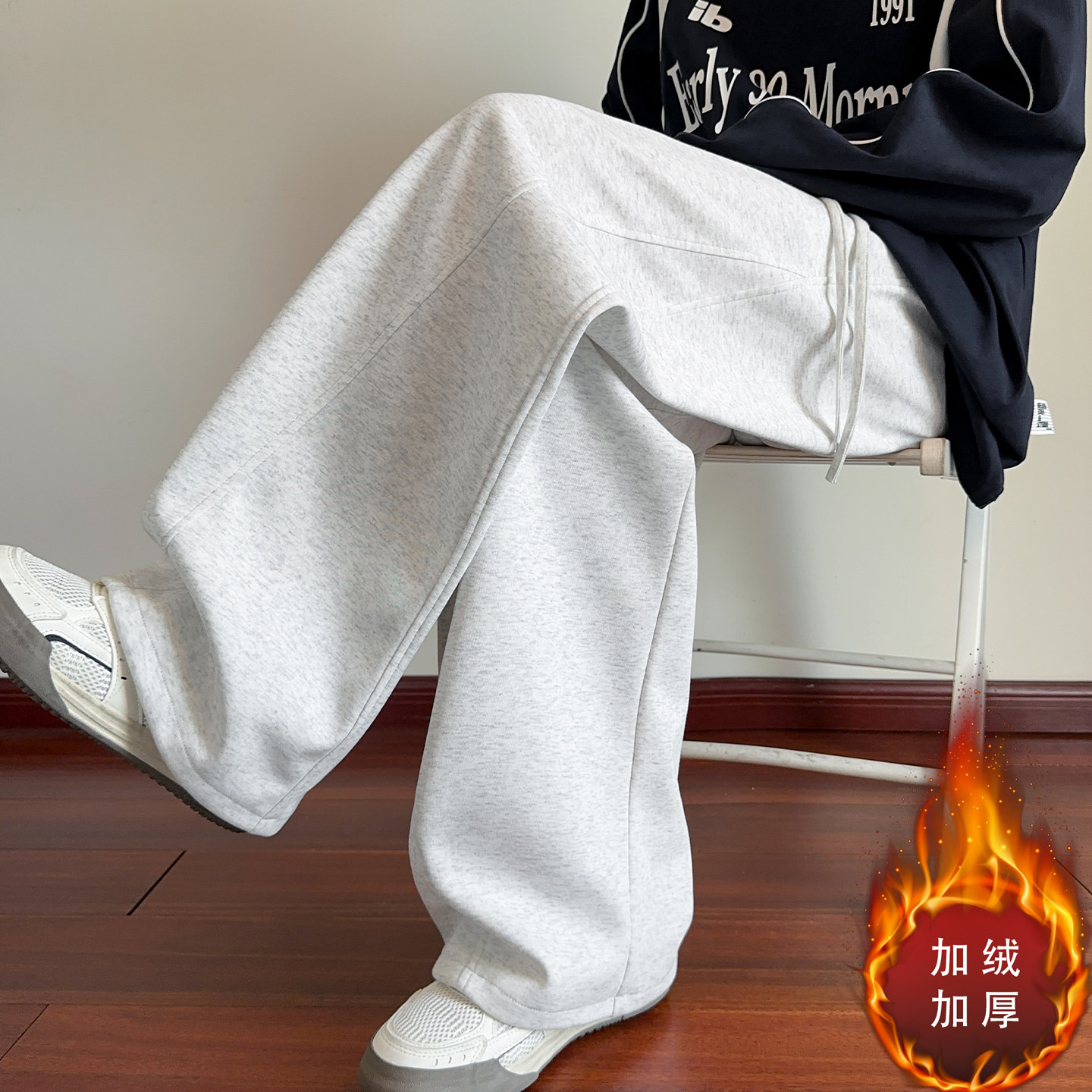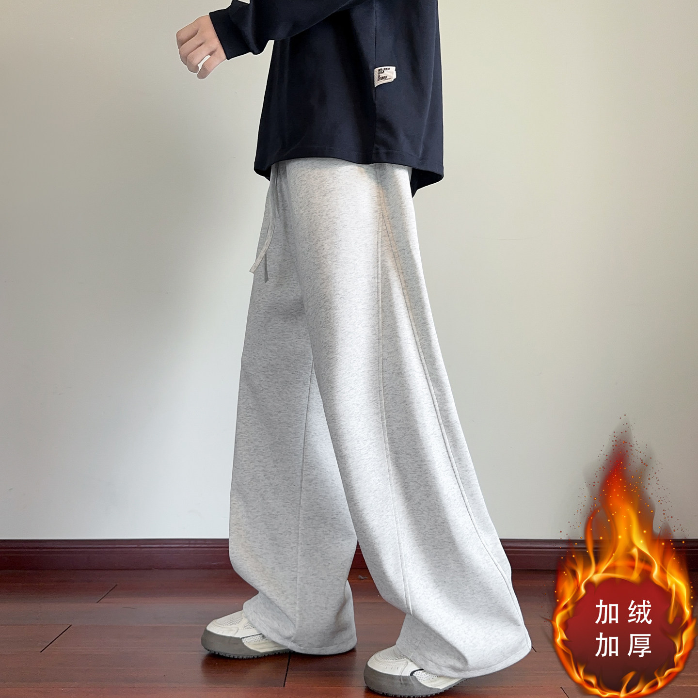 弯刀重磅卫裤男款冬季加绒青少年美式运动休闲裤子宽松直筒阔腿裤