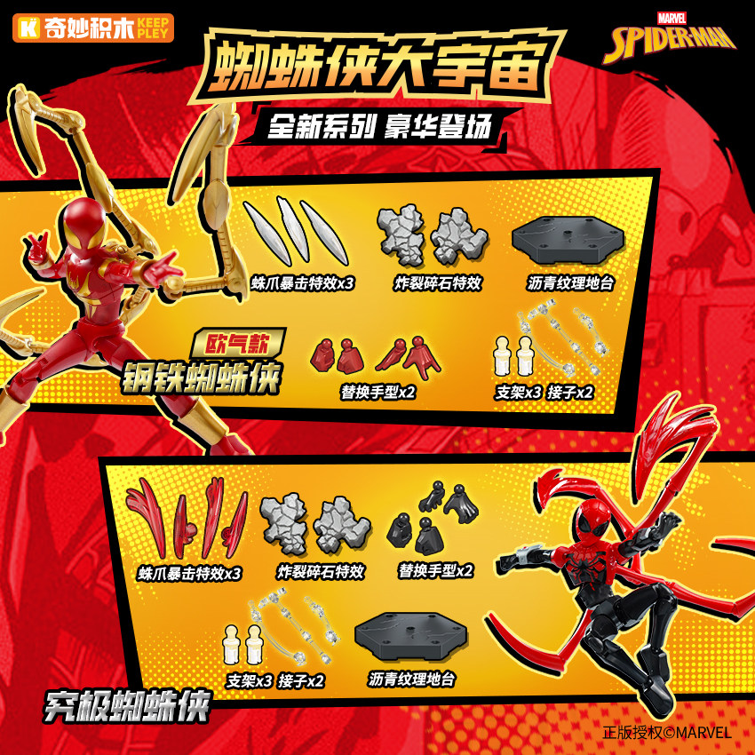 奇妙积木漫威蜘蛛侠无限版盲盒男孩拼装积木人手办模型摆件玩具