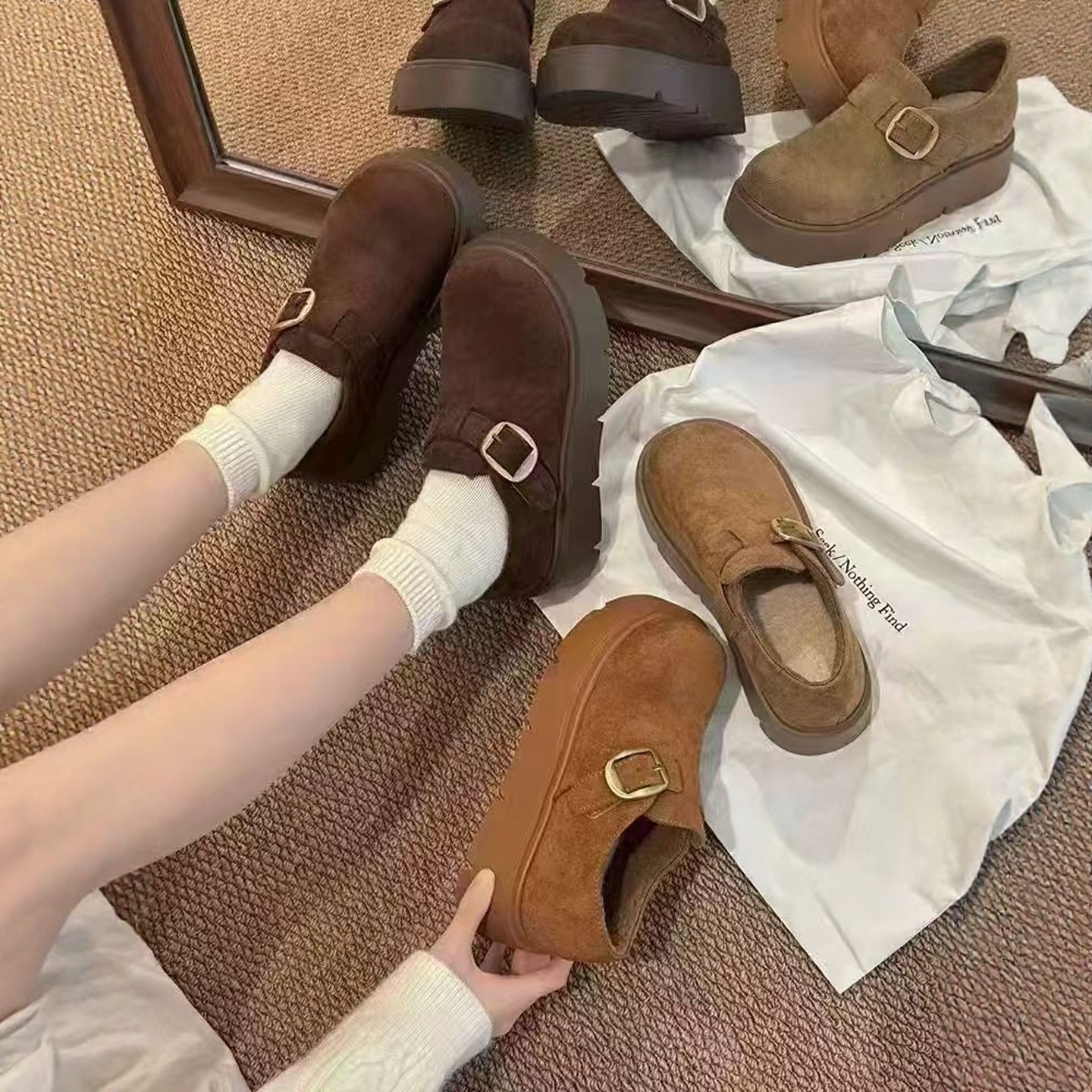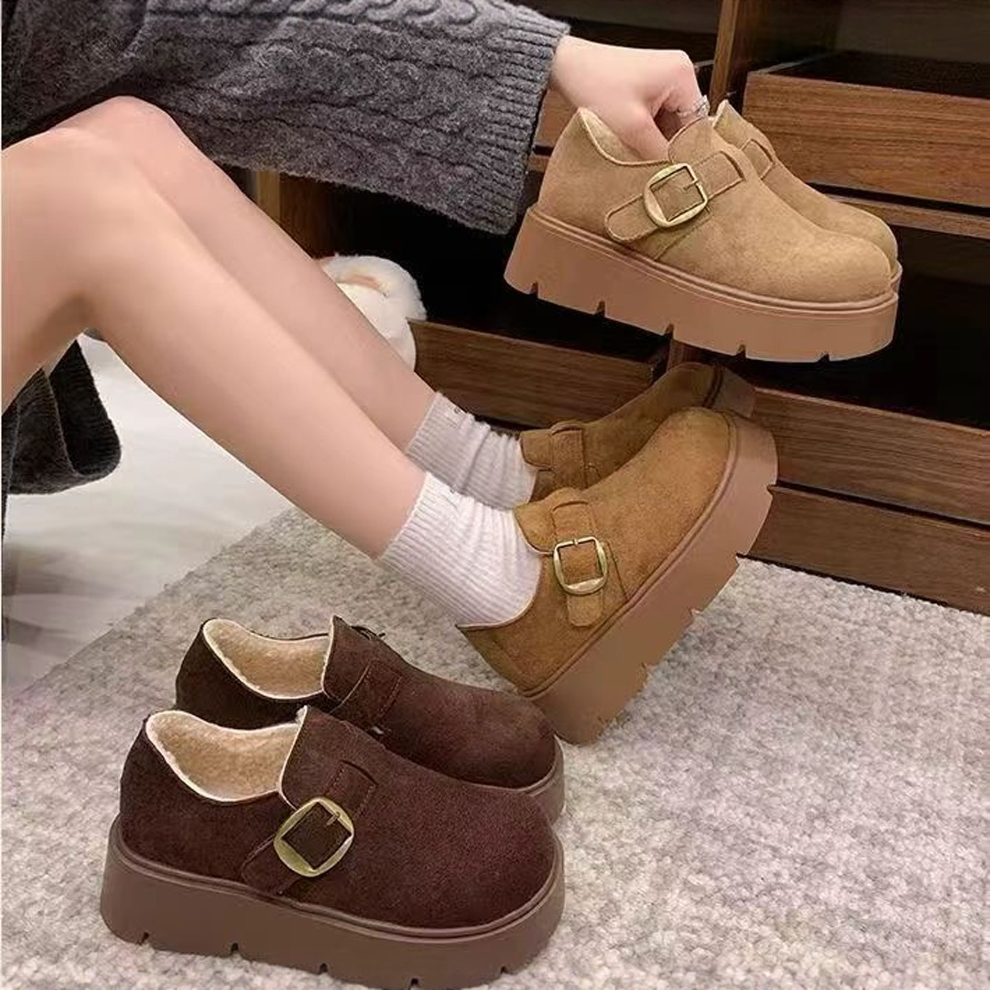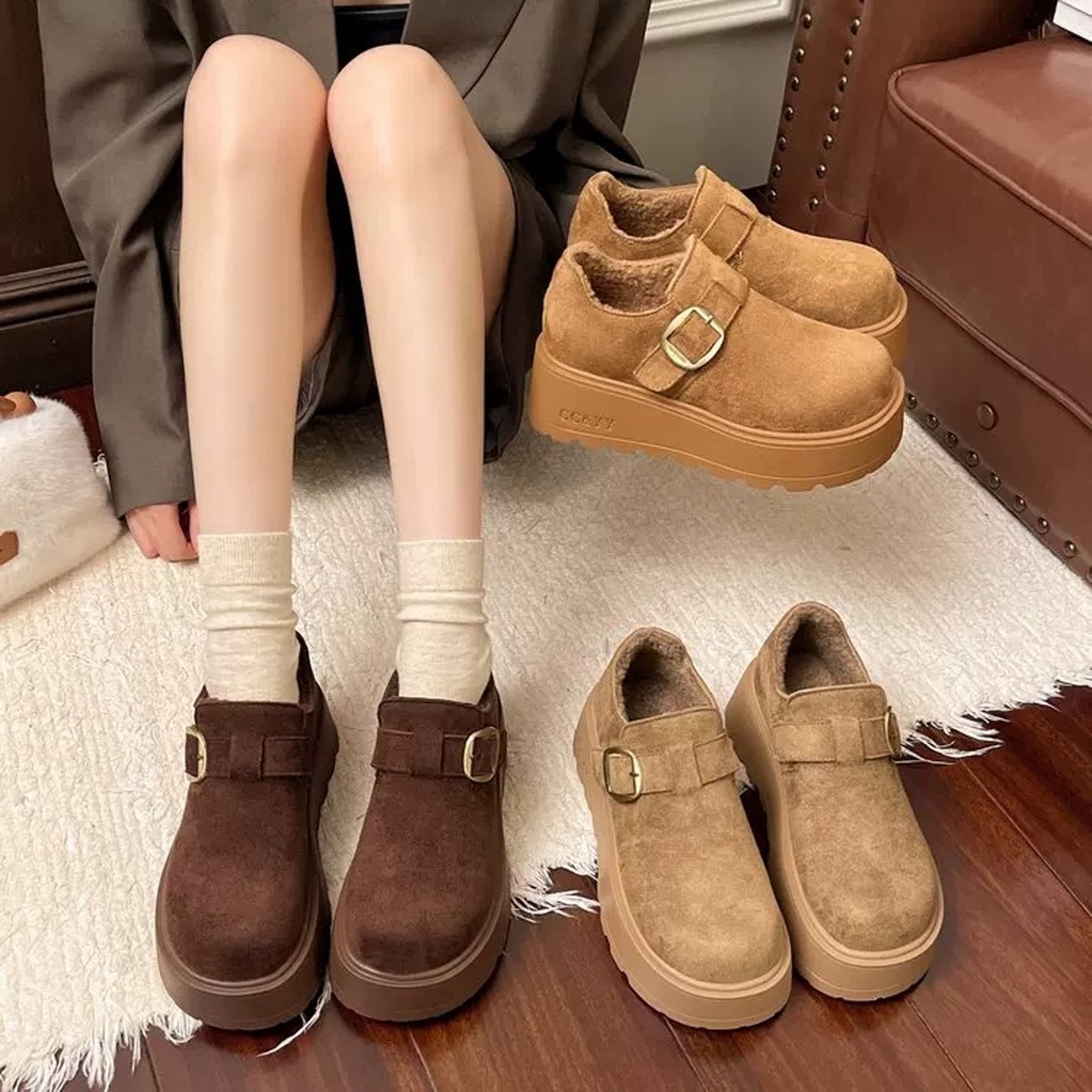 加厚不累脚一体勃肯鞋女26新年款冬季外穿厚底增高加绒保暖毛毛鞋