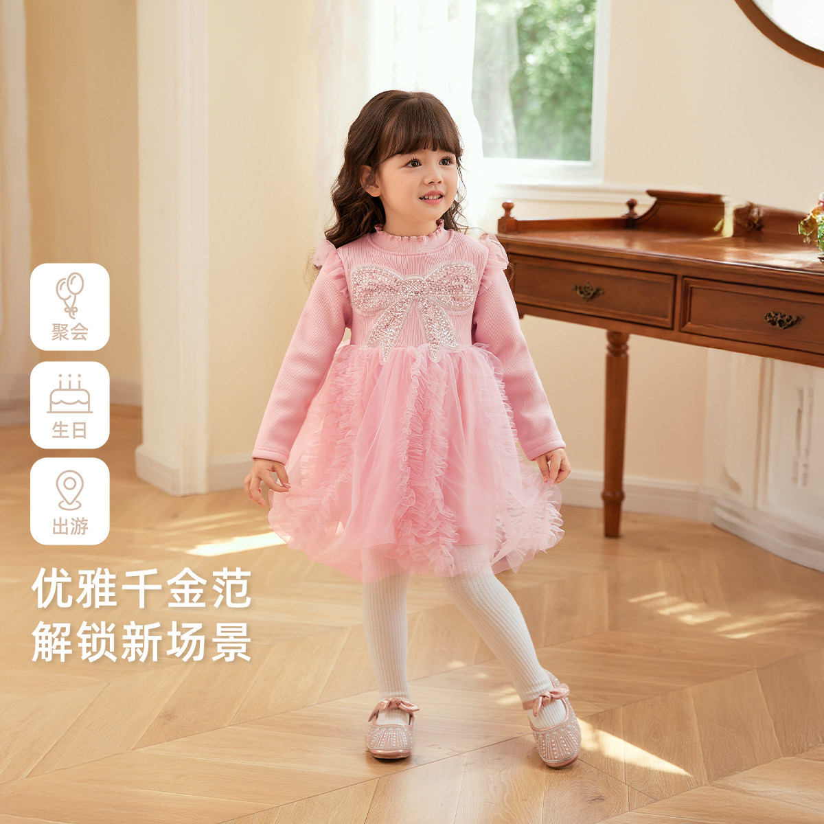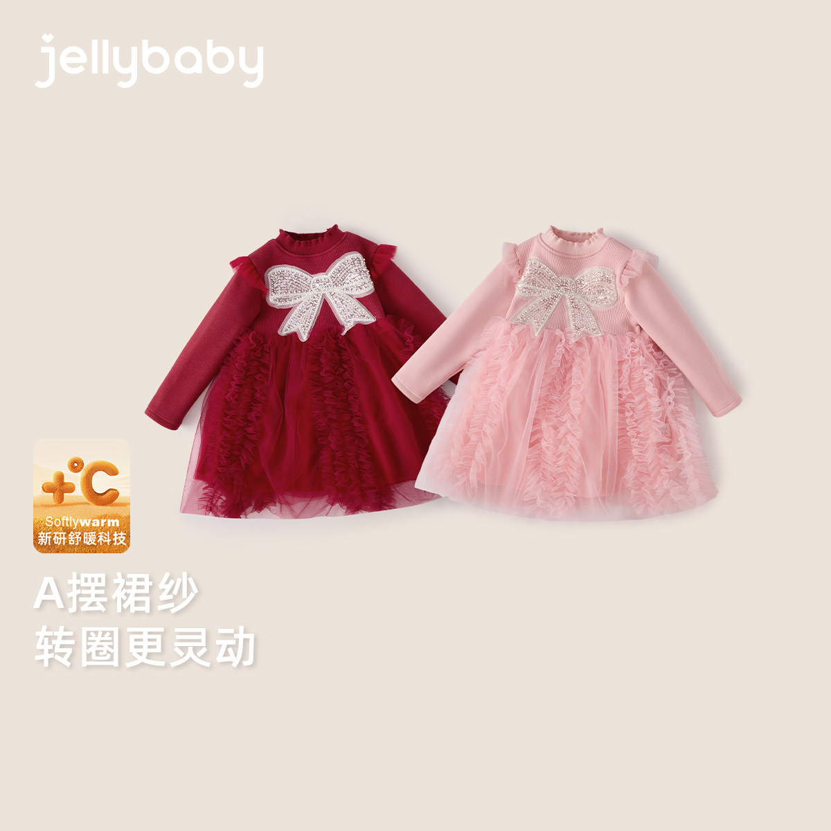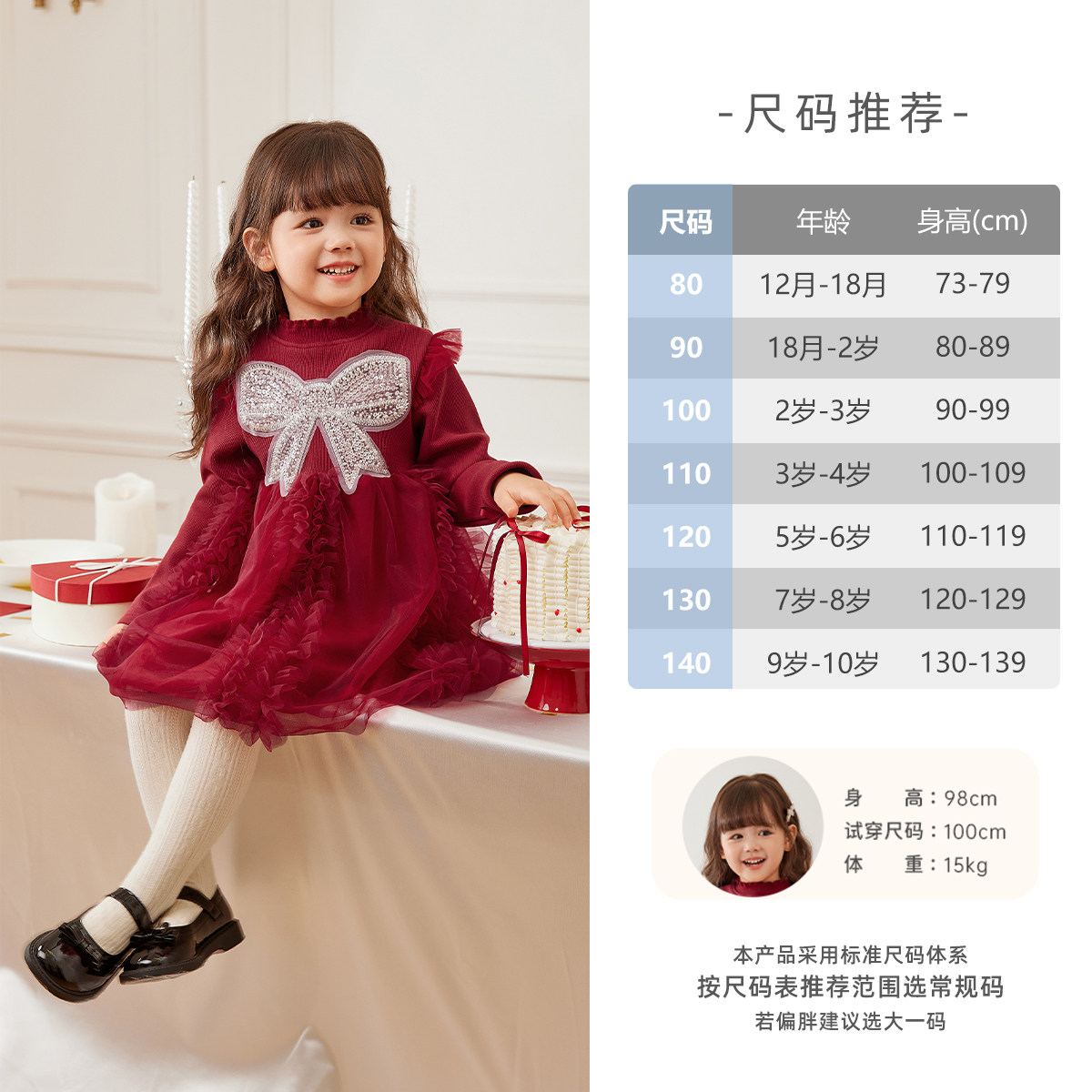 [抗菌锁温]裙子儿童连衣裙女童冬装2026新款保暖加绒宝宝红色纱裙