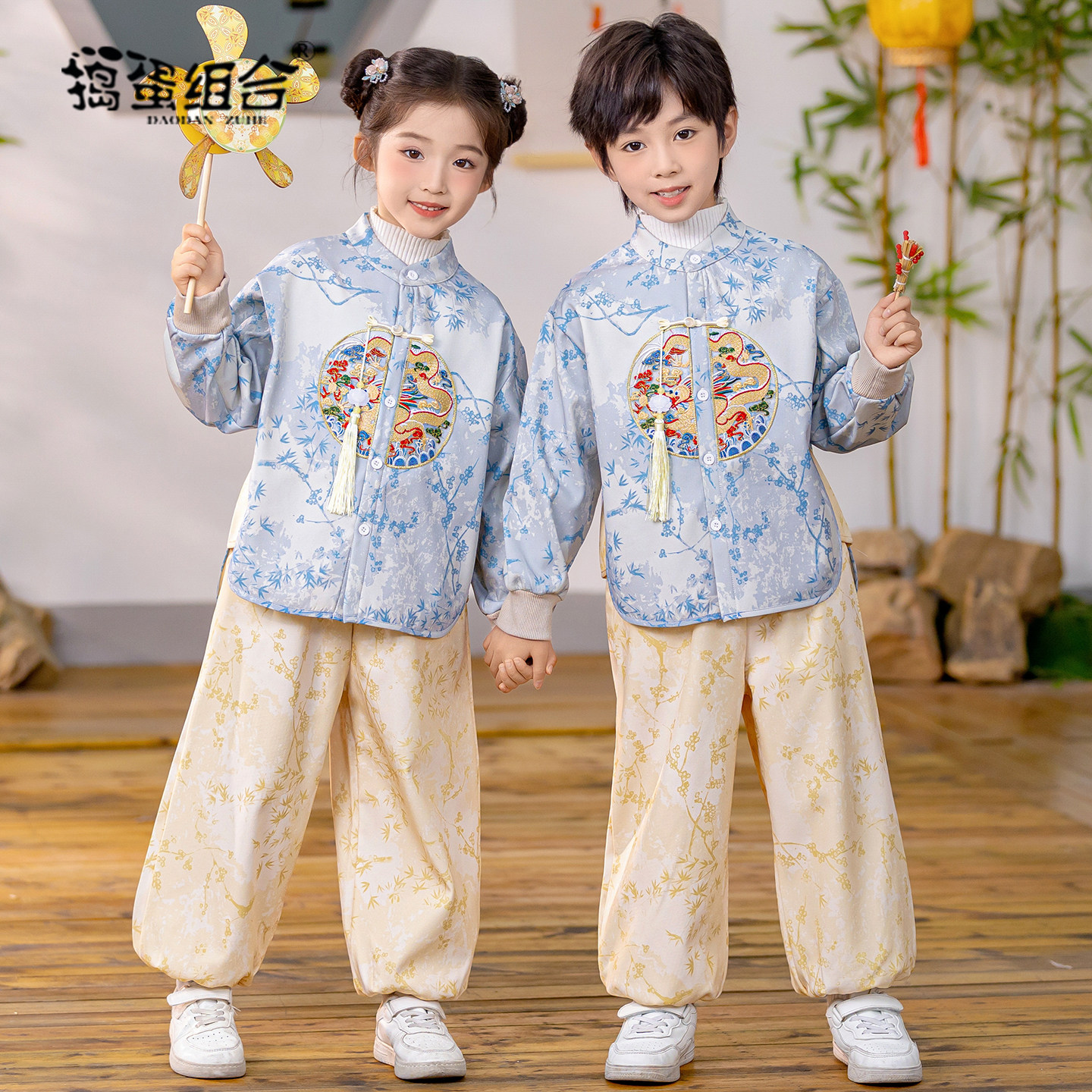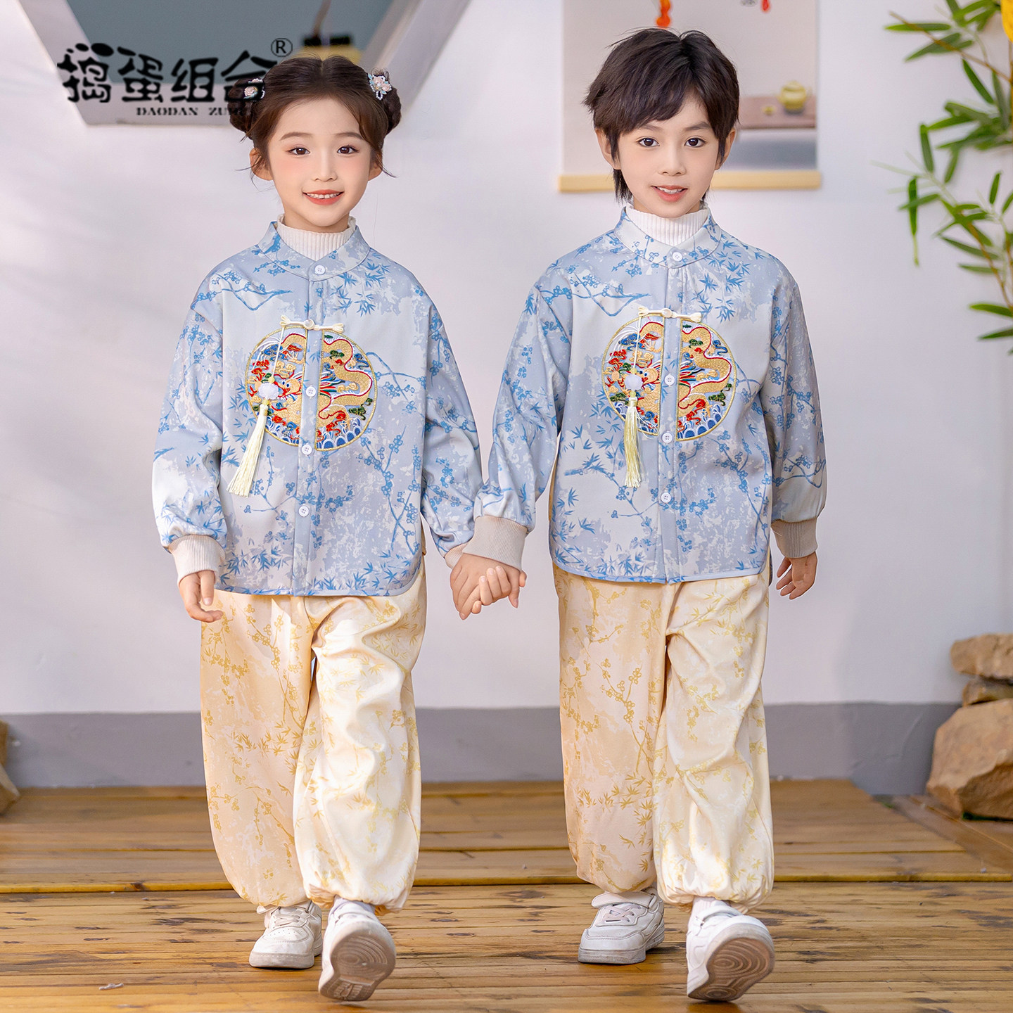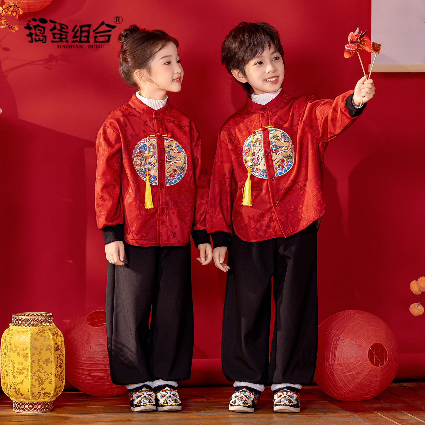 男童唐装冬装新年中式喜庆拜年服女童中国风汉服男宝宝过年服薄款