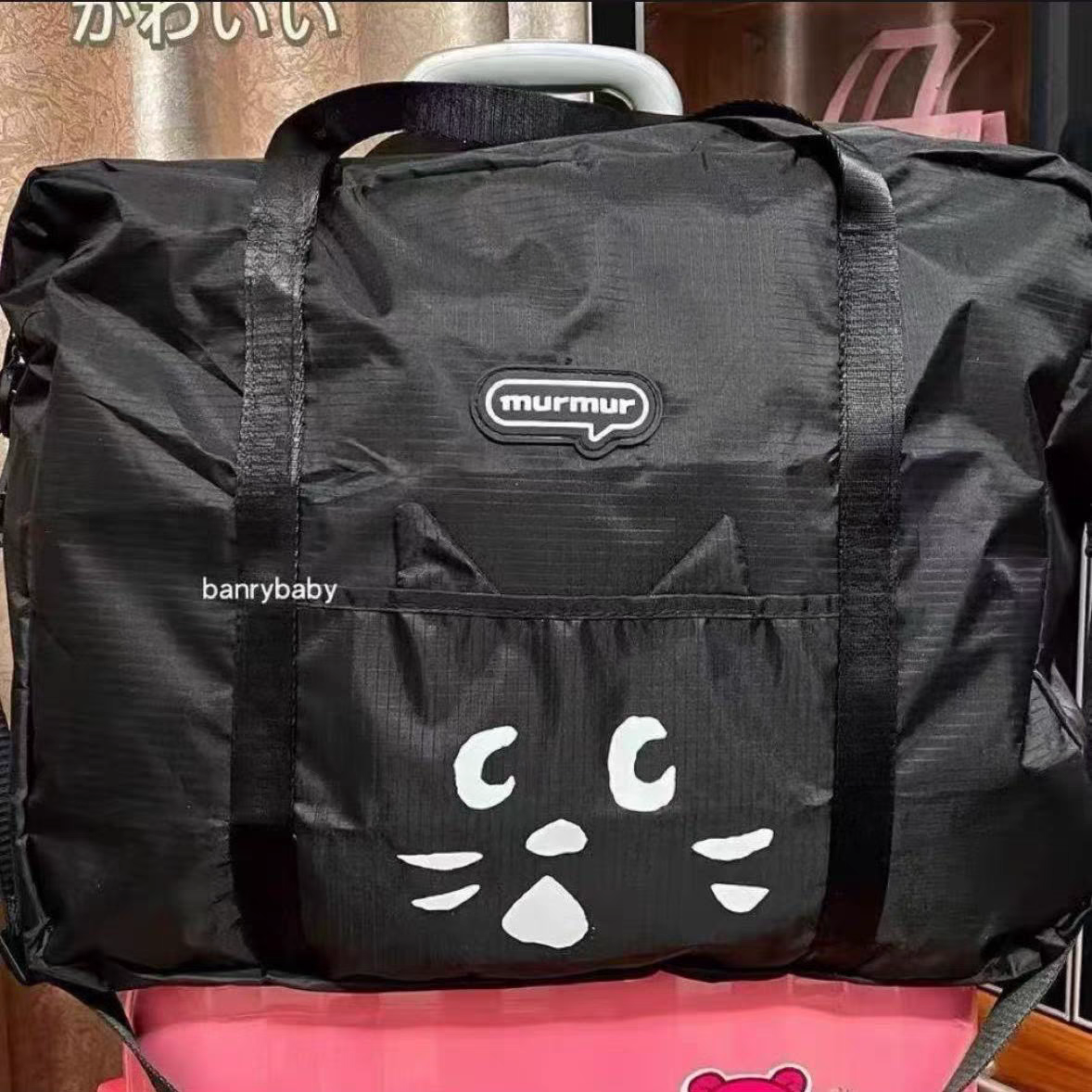 日系惊讶猫卡通可折叠大容量行李包便携短途旅行袋男女出行登机包