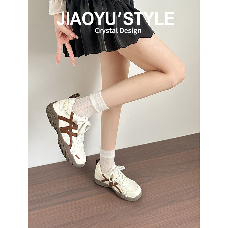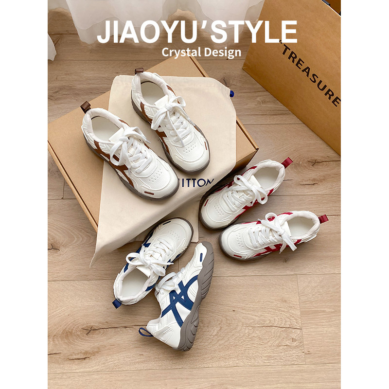 真皮~骄屿内增高芭蕾德训鞋女2026春新款红色透气休闲阿甘运动鞋