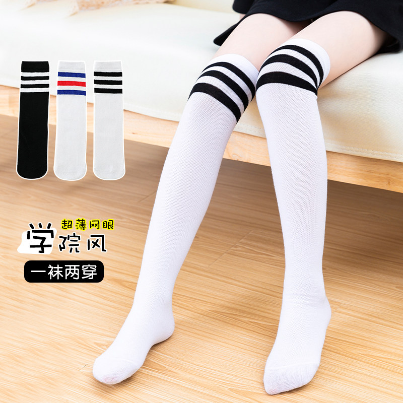 儿童长筒袜夏季薄款男童足球袜女童学生纯棉网眼高筒过膝袜子宝宝