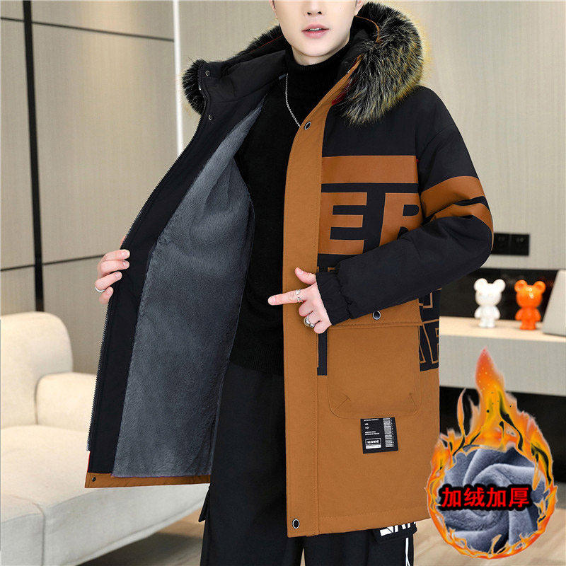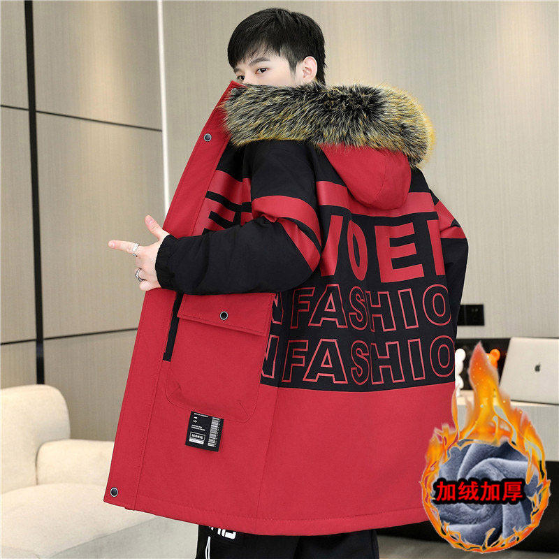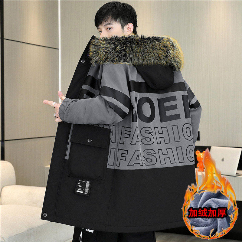 青少年男款羽绒服中长款棉衣冬季外套学生保暖棉服加绒加厚派克服