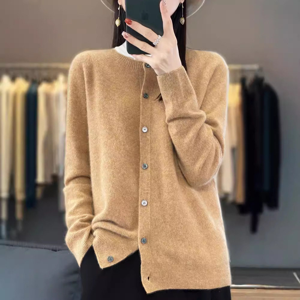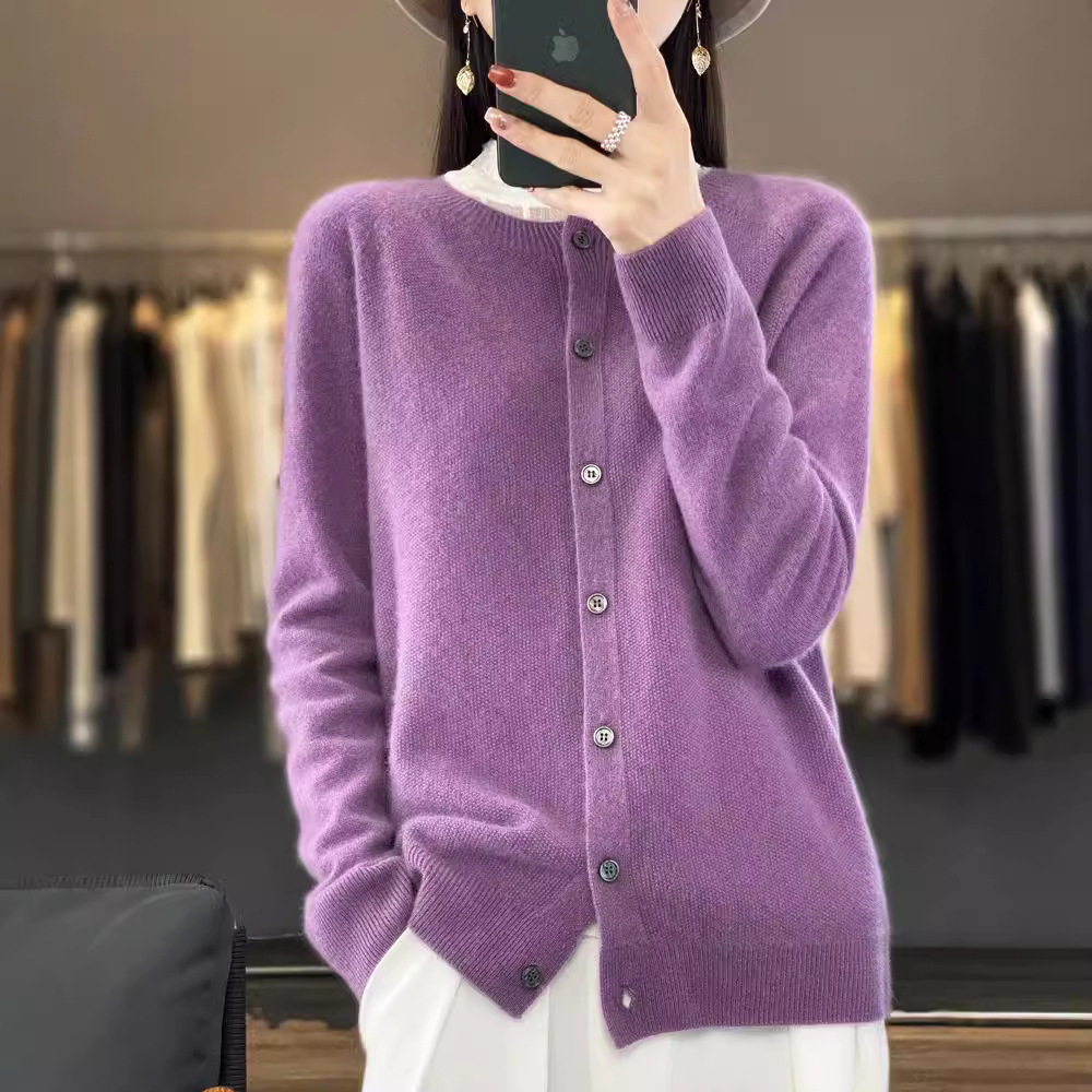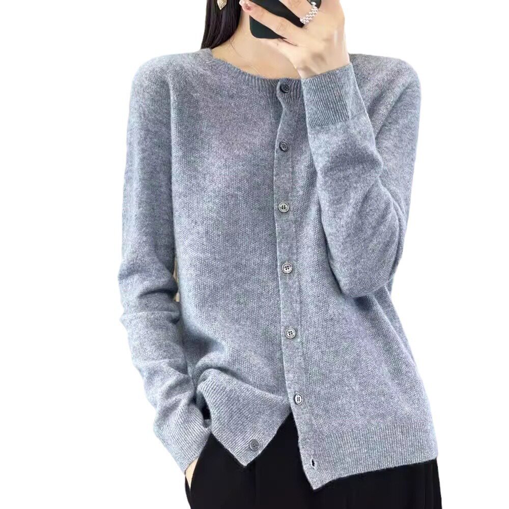 广东大朗毛织官方旗舰店不起球正品开衫圆领宽松型毛衣女式针织衫