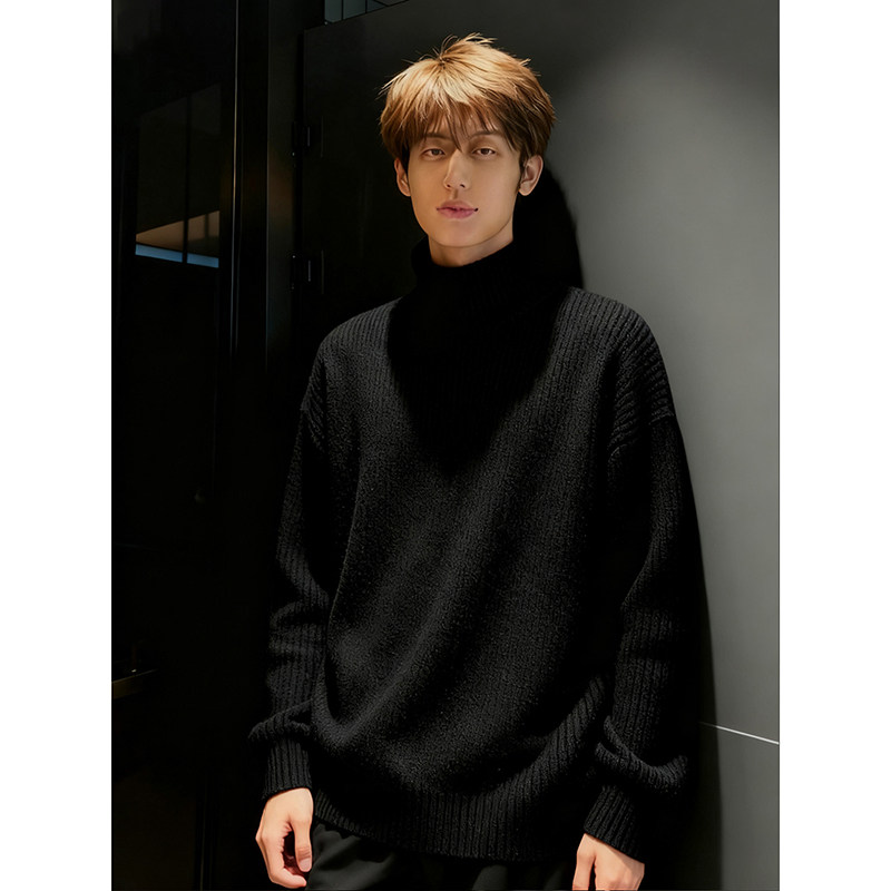 黑色高领毛衣男款秋冬季加绒加厚针织打底衫cleanfit慵懒内搭线衣