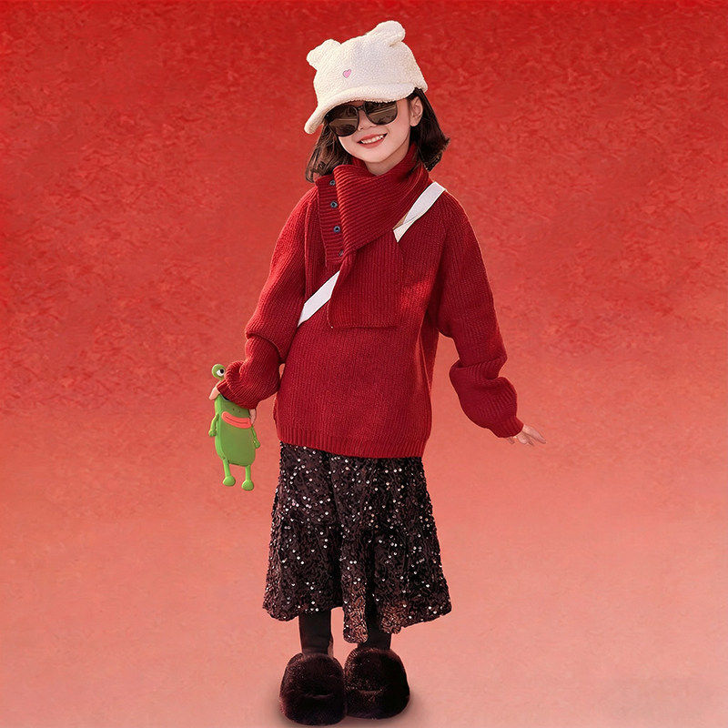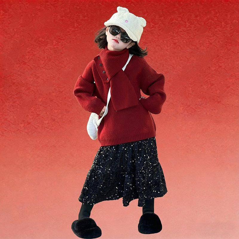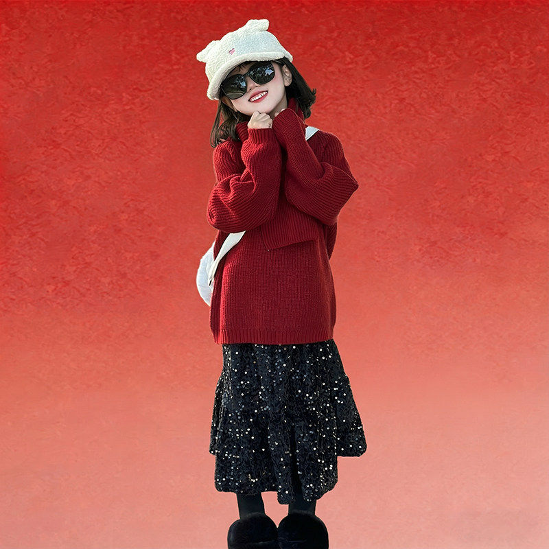 女童红色拜年服2026儿童冬装喜庆风衣服女孩裙子加厚拜冬年服套装