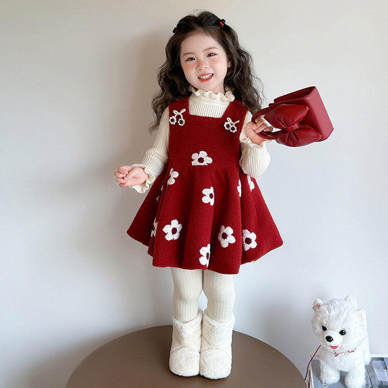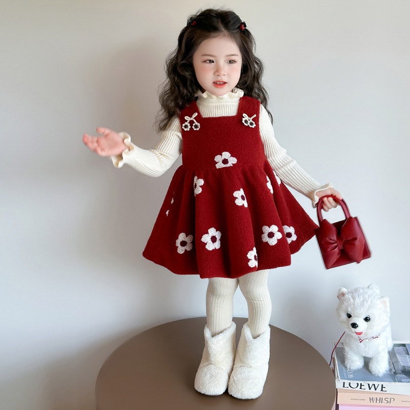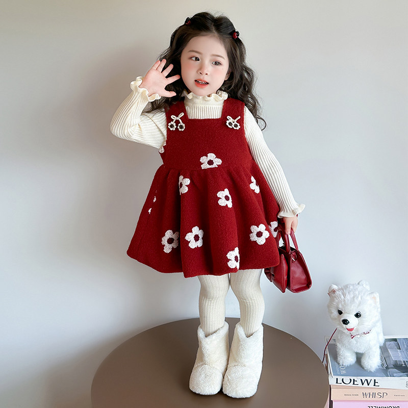 女童连衣裙秋冬装2026冬季女宝宝红色儿童梅花拜年服新款过年裙子