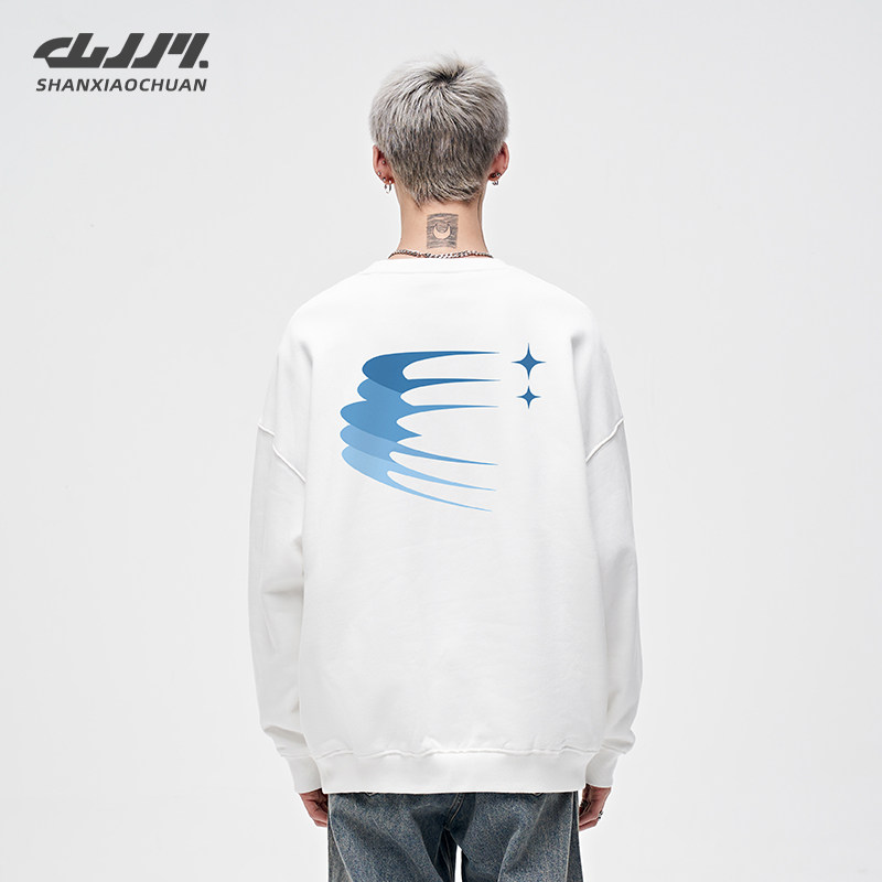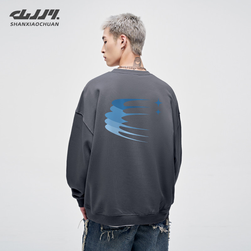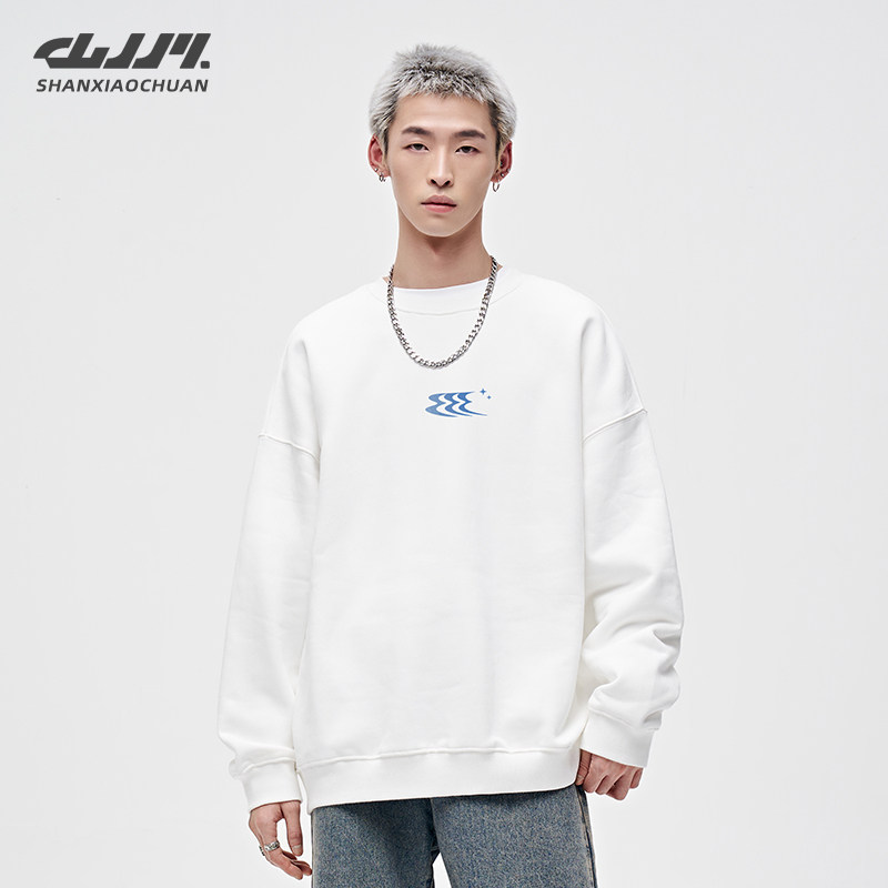 山小川潮牌加绒卫衣男款秋冬美式套头宽松重磅青少年加厚圆领长袖