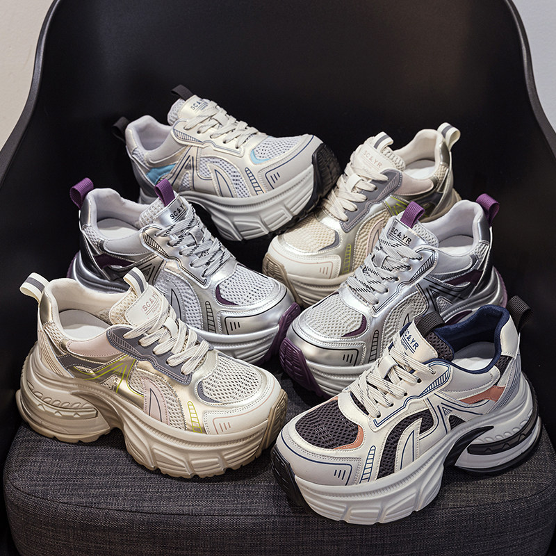 ZFCQ新款小个子厚底内增高老爹鞋女款真皮2025秋显脚小轻便休闲鞋