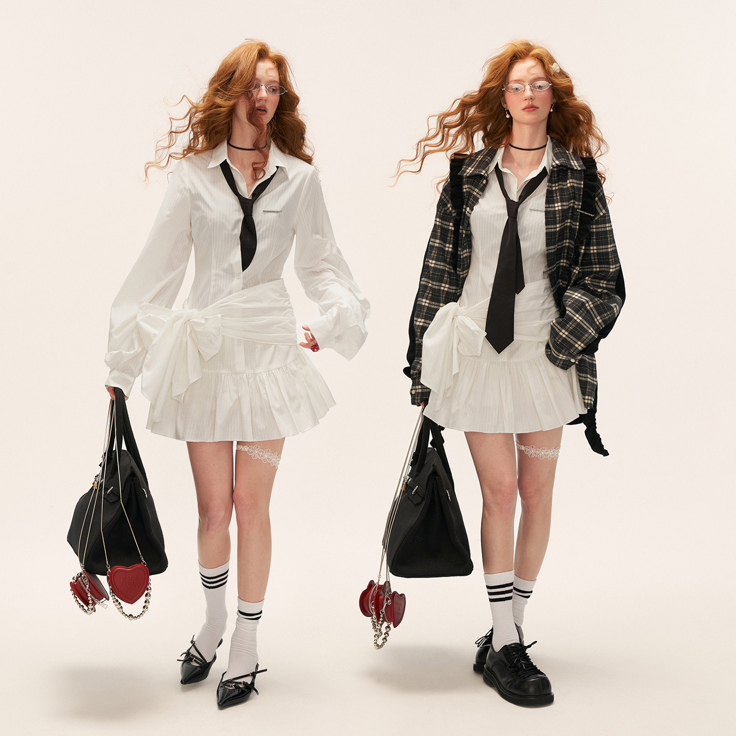 MAMC白色暗纹蝴蝶结衬衫裙2025新款高级设计感长袖裙子秋季连衣裙