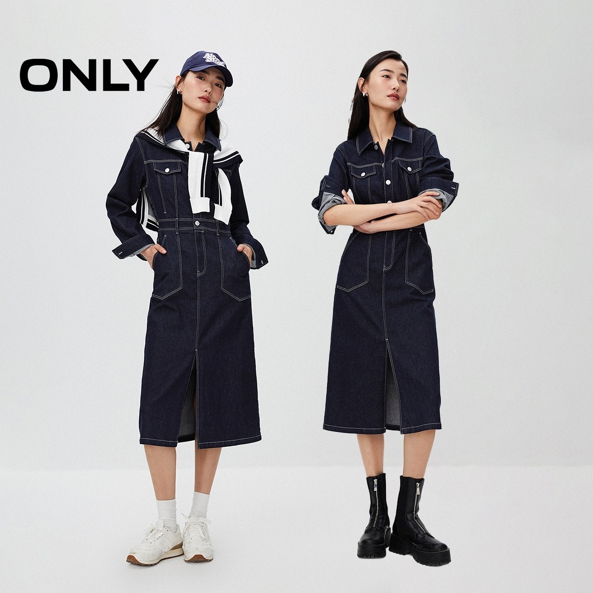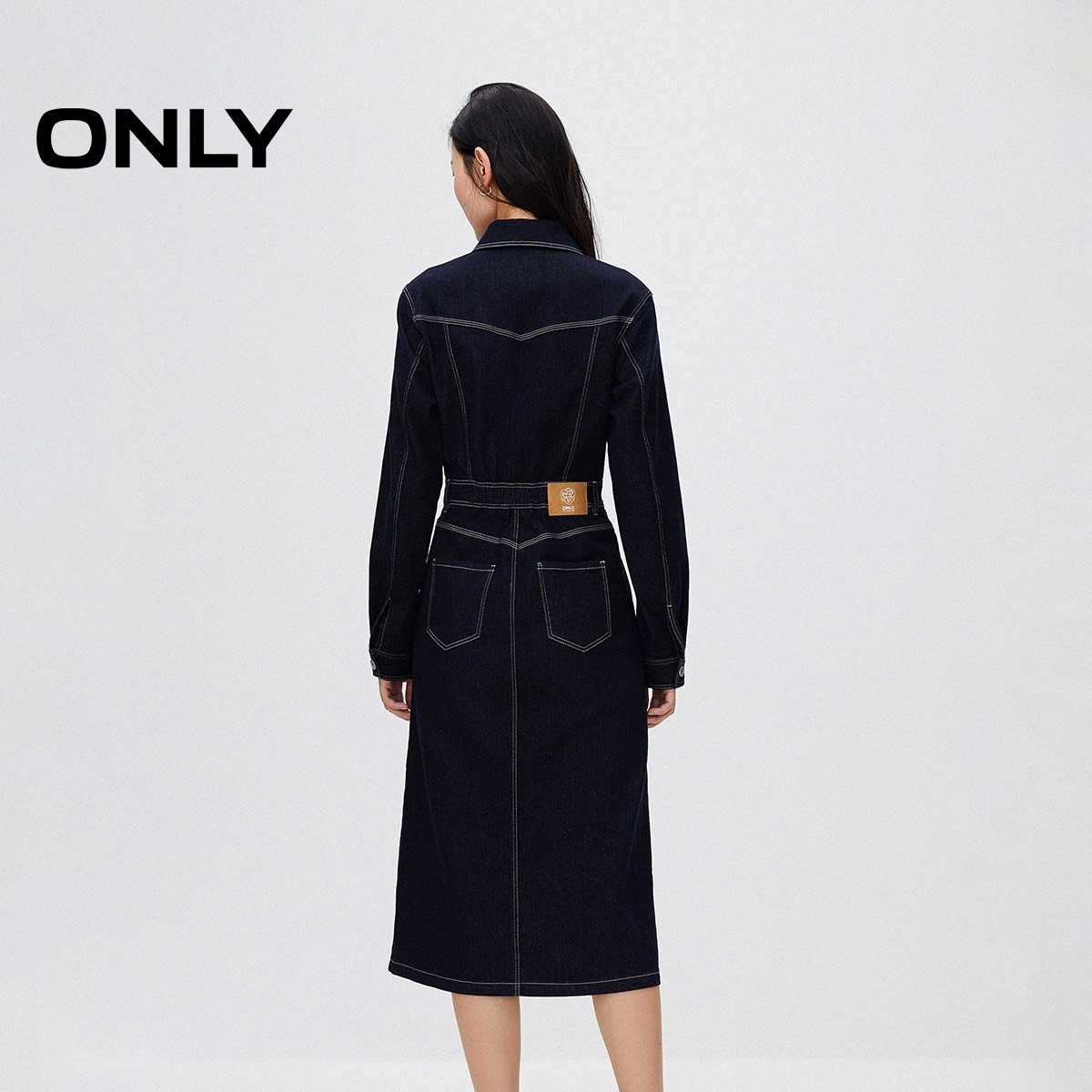 ONLY2025秋冬新款气质原色牛仔A字收腰中长款牛仔裙连衣裙女