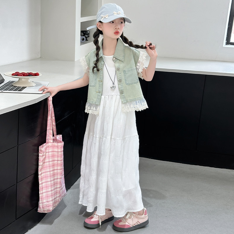 女童套装夏季时尚洋气时髦儿童2025新款短袖马甲大童女孩连衣裙子